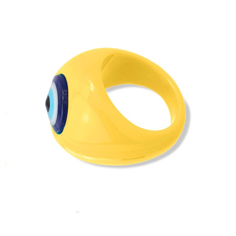 Anillo tamaño maxi de plástico reciclado en vivos colores y detalle central