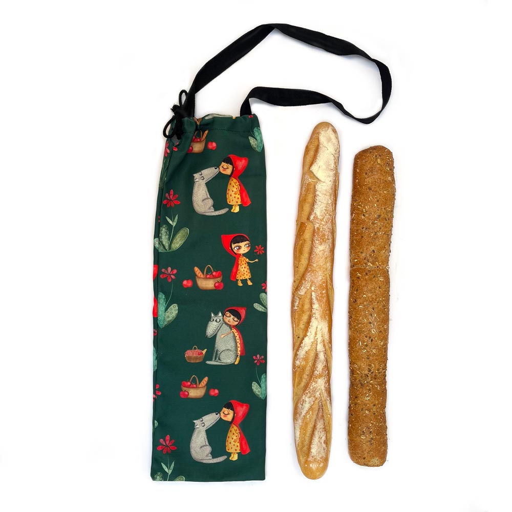 Bolsa para el pan ilustrada por Esther Voltà, confeccionada con tela de