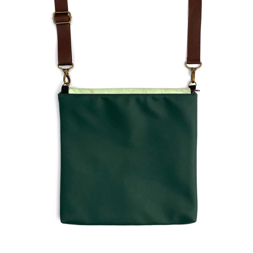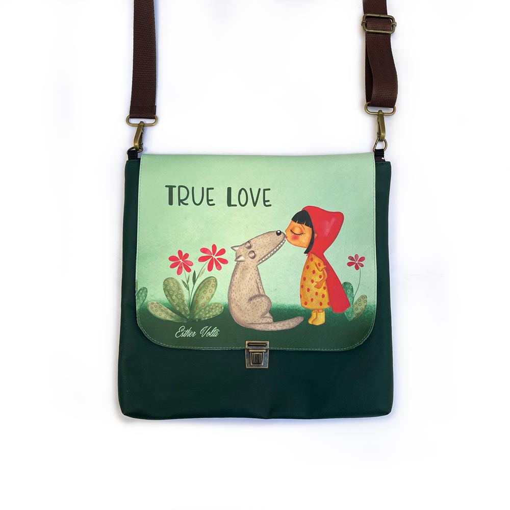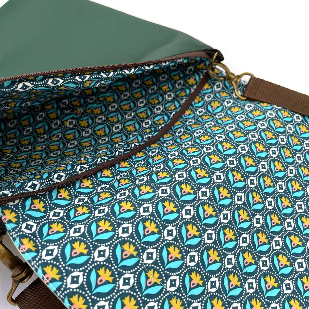 Bolso con 2 Bolsillos interiores. Asa ajustable, Cremallera + cierre tic tac. Medidas: 30 cm Ancho x 30 cm Alto. Composición: Exterior: Polipiel de alta calidad impresa con tintas ecológicas (Ecopiel o piel vegana) Interior: Forro con tela de algodón con bonitos estampados, los estampados pueden variar. Herrajes: Metálicos.