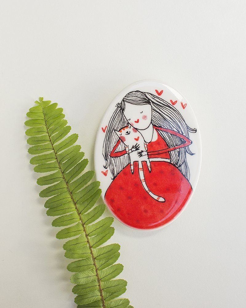 Broche Ovalado Amor Gatuno D Dorado