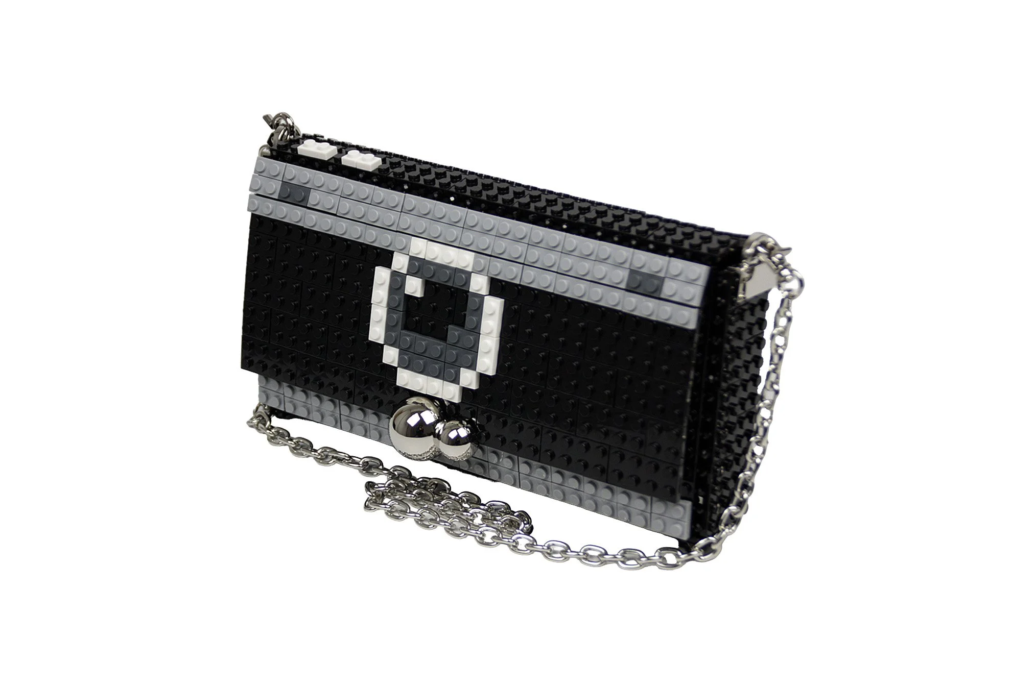 Small Squared Clutch with Stones Clasp and metallic chain, in black color customizing the design as the photo.We will ship you the bag with the design already assembled. The design blocks are in&out, so you can use them for this customization or any other, change your Bag&Block whenever you want and adapt it any time to your wish.Dimensions 25cm x 13cm x 6cm. Weight 370gr + 130gr metal chain. Fits well inside any Iphone. 196 ABS Blocks Hand Assembled + In&Out top blocks. Includes Cotton Dust Bag, inside pocket and In&Out 105cm length Metal Chain.Main Composition: ABS blocks, Glass beads and Metallic accessories. Lining Composition:100%Polyester Satin. Top design made in Zamora (Spain). Bag base assembled in Tamil Nadu (India)..Please click here to see inside and outside details from the bag.We can send you the chain length you wish according your body and how you like to wear your handbags, please check on this link our suggested lengths and add to the cart the length you wish, otherwise we will send you the standard length for this bag (105 cm).If you wish you can add an extra strap to your cart in this link, this way you can have a long and a short strap to change whenever you want.Add additional block packs to your order so you can customize your Bag&Block endless times, each design on this website includes the list of blocks needed and you can use our blocks or any standard brand.——————————————————————————————————————————Cartera con forma cuadrada, cierre metálico con forma de piedras y cadena metálica de quita y pon en color negro con el diseño de la foto.El bolso se enviará con el dibujo ya montado para que lo puedas disfrutar desde el minuto cero, piensa que todos los diseños son de quita y pon, o sea que puedes cambiar el bolso siempre que quieras y adaptarlo a los colores o el estilo que lleves.Dimensiones 25cm x 13cm x 6cm. Peso 370gr + 130gr la cadena metálica. Formado por 266 bloques de ABS ensamblados a mano. Incluye funda guardapolvo de algodón, bolsillo interior y cadena metálica de quita y pon de 105 cm de longitud, si desea otro largo o un asa adicional por favor contáctenos al realizar el pedido.Composición exterior: bloques de ABS, abalorios de cristal y accesorios metálicos. Composición del forro interior: Raso 100% Poliéster. El dibujo de quita y pon se realiza en Zamora (España) y la base del bolso se realiza en Tamil Nadu (India).Pulse aquí para ver detalles internos y externos del bolso.Te podemos enviar el bolso con el largo de cadena que desees, por favor mira en este enlace las medidas que recomendamos e introduce en el carrito la medida de cadena que desees. Si no eliges un largo especial en este link te enviaremos la cadena de 105cm.Si quieres una cadena extra añádela al carrito en este link y te enviaremos dos cadenas, así puedes ponerle asa corta o asa larga cuando quieras a tu cartera.Puedes añadir más paquetes de bloques en tu pedido en este enlace, así podrás customizar tu bolso siempre que quieras, en cada diseño especificamos los paquetes de bloques necesarios, echa un vistazo a otros diseños que te gusten y podrás tener ambos en un solo bolso. Bag&Block es compatible con las piezas de otras marcas estándar de bloques de construcción.