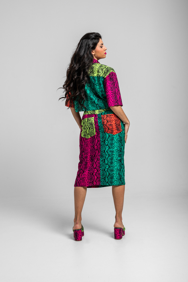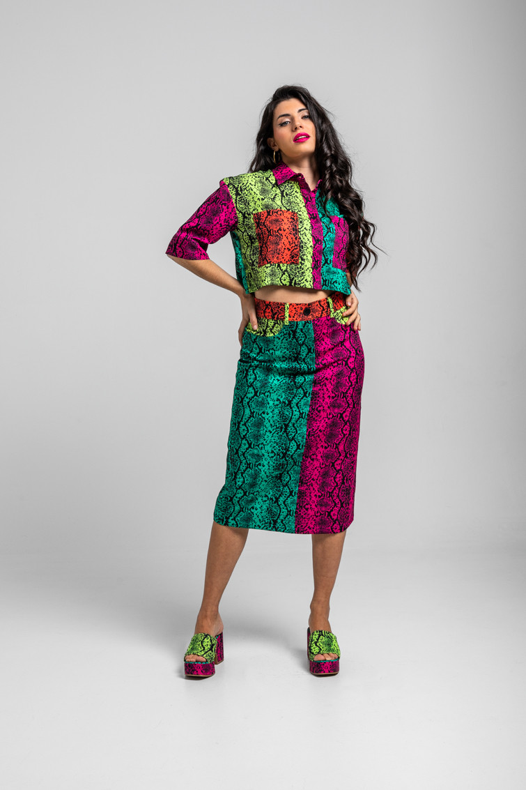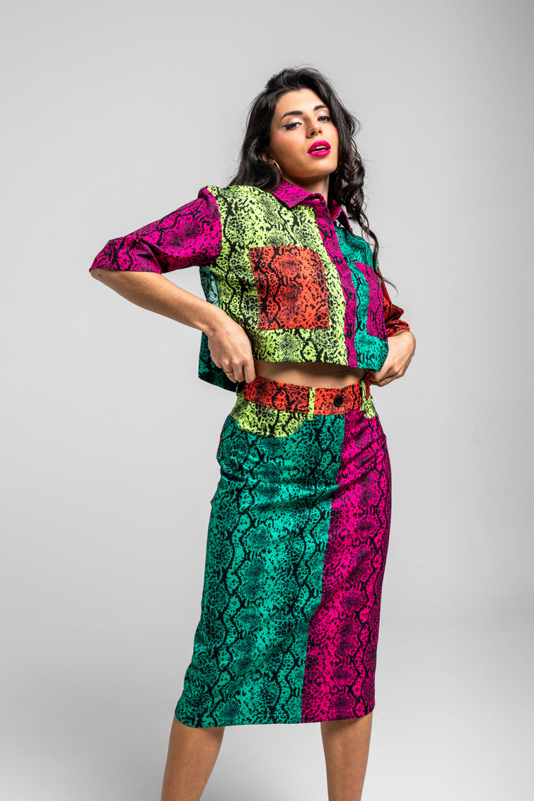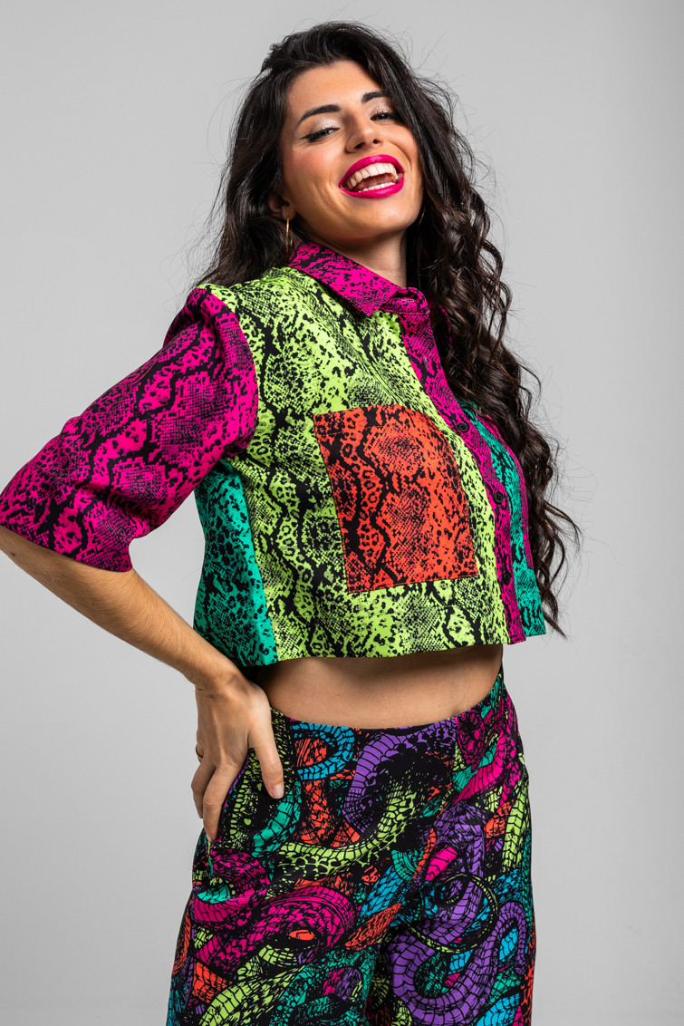 Snake: serpenteando por la vida – Camisa Cargo Crop Serpientes mix animal print : Camisa corta con cuello clásico de camisa en pico y canesú en la espalda. Modelo de corte holgado con hombros ligeramente caídos, mangas cortas y bolsillos delanteros. – 100% Poliéster. – Lavar a máquina en agua fría. No usar blanqueador. No usar secadora. Secar colgado a la sombra. Planchado a temperatura baja, por debajo de 100 ºC. Planchar del revés. No dejar la plancha parada sobre la prenda. Lavar con colores similares. – TALLA XS: Medida de pecho 53 cm, medida del bajo 51 cm y largo del cuerpo 38,5 cm. TALLA S: Medida de pecho 55 cm, medida del bajo 53 cm y largo del cuerpo 40 cm. TALLA M: Medida de pecho 57 cm, medida del bajo 55 cm y largo del cuerpo 41,5 cm. TALLA L: Medida de pecho 59 cm, medida del bajo 57 cm y largo del cuerpo 43 cm. TALLA XL: Medida de pecho 61 cm, medida del bajo 59 cm y largo del cuerpo 44,5 cm. – Las medidas de las prendas pueden presentar pequeñas variaciones debido al proceso de producción de hasta 2 cm. – Lolina ha realizado un gran esfuerzo para mostrar los colores de las prendas de la forma más cercana a la realidad posible. No obstante, queremos que tengas en cuenta que el color de las prendas que aparecen en pantalla puede estar sujeto a variaciones dependiendo de la calidad de tu ordenador o smartphone.