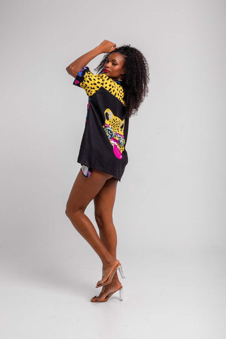 Summer time: y a gozarla – Camisa safari negra con estampado veraniego: Camisa de tela ligera. Cuello de camisa en pico. Cierre frontal con botones. Manga corta vuelta. – 100% Poliéster. – Lavar a máquina en agua fría. No usar blanqueador. No usar secadora. Secar colgado a la sombra. Planchado a temperatura baja, por debajo de 100 ºC. Planchar del revés. No dejar la plancha parada sobre la prenda. Lavar con colores similares. – TALLA XS: Medida de pecho 57 cm, medida del bajo 60 cm y largo del cuerpo 65.5 cm.TALLA S: Medida de pecho 59 cm, medida del bajo 62 cm y largo del cuerpo 67 cm.TALLA M: Medida de pecho 61 cm, medida del bajo 64 cm y largo del cuerpo 68.5 cm.TALLA L: Medida de pecho 63 cm, medida del bajo 66 cm y largo del cuerpo 70 cm.TALLA XL: Medida de pecho 65 cm, medida del bajo 68 cm y largo del cuerpo 71.5 cm. – Las medidas de las prendas pueden presentar pequeñas variaciones debido al proceso de producción de hasta 2 cm. – Lolina ha realizado un gran esfuerzo para mostrar los colores de las prendas de la forma más cercana a la realidad posible. No obstante, queremos que tengas en cuenta que el color de las prendas que aparecen en pantalla puede estar sujeto a variaciones dependiendo de la calidad de tu ordenador o smartphone.