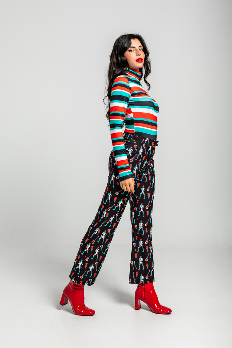 Let’s Dance: y no pares de bailar. – Camiseta Cuello: Top de tejido elástico en color liso de cuello alto y mangas largas. – 95% Poliéster y 5% Elastán. – Lavar a máquina en agua fría. No usar blanqueador. No usar secadora. Secar colgado a la sombra. Planchado a temperatura baja, por debajo de 100 ºC. Planchar del revés. No dejar la plancha parada sobre la prenda. Lavar con colores similares. – TALLA XS: Medidas de pecho 36 cm, ancho de prenda 36 cm y largo 55,5 cm. TALLA S: Medidas de pecho 38 cm, ancho de prenda 38 cm y largo 57 cm. TALLA M: Medidas de pecho 40 cm, ancho de prenda 40 cm y largo 58,5 cm. TALLA L: Medidas de pecho 42 cm, ancho de prenda 42 cm y largo 60 cm. TALLA XL: Medidas de pecho 44 cm, ancho de prenda 44 cm y largo 61,5 cm. TALLA XXL: Medidas de pecho 46 cm, ancho de prenda 46 cm y largo 63 cm. Las medidas de las prendas pueden presentar pequeñas variaciones debido al proceso de producción de hasta 2 cm. – Lolina ha realizado un gran esfuerzo para mostrar los colores de las prendas de la forma más cercana a la realidad posible. No obstante, queremos que tengas en cuenta que el color de las prendas que aparecen en pantalla puede estar sujeto a variaciones dependiendo de la calidad de tu ordenador o smartphone.