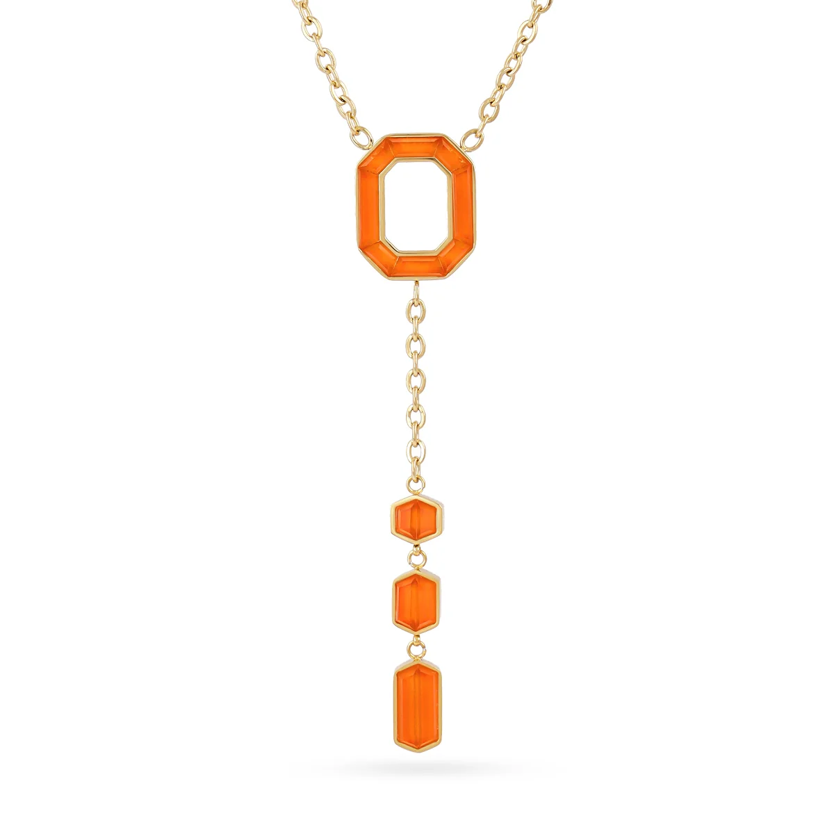 Collar tipo corbata confeccionado en acero quirúrgico hipoalergénico, perfecto para noches especiales y celebraciones. Destaca por sus detalles geométricos adornados con cristales facetados que reflejan la luz con elegancia. Disponible en blanco, naranja, turquesa o lila para adaptarse a tu estilo. Pieza sofisticada de alta calidad que combina a la perfección con otras joyas de la colección Gleam, creando looks refinados y personalizados.