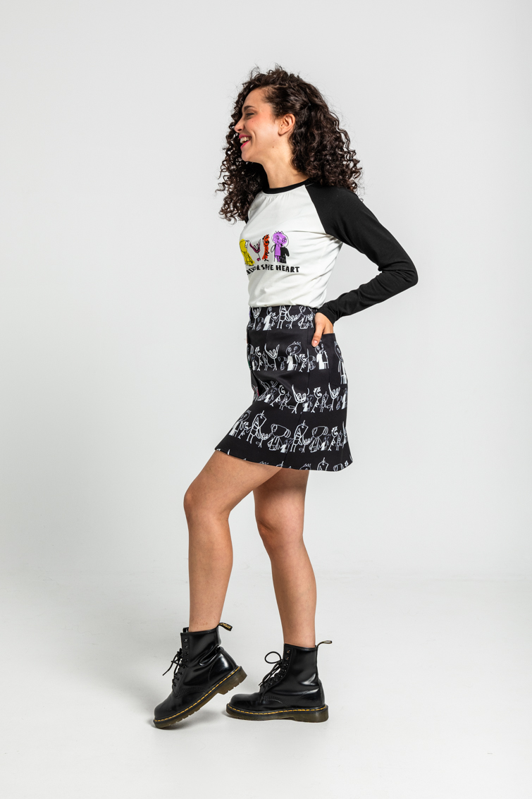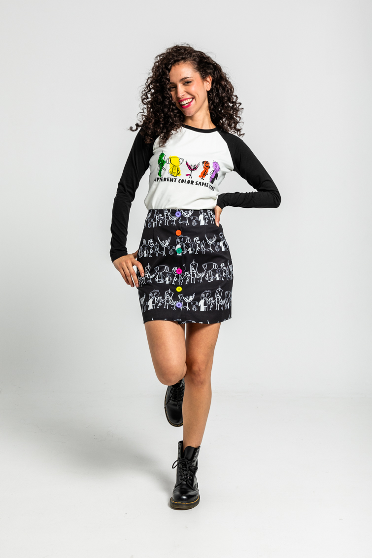 Imagine: es una colección benéfica que nace de la imaginación de los nenes de un centro de acogida en Granada, niños que a pesar de sus circunstancias crecen con su imaginación intacta. Parte de los beneficios de esta colección irán a parar a ayudar a dicho centro. – Falda corchetes: Falda corta de corte ajustado de tela con cuerpo y estampado vectorial. Apertura central con botones. Incluye forro con tejido de contraste y con bolsillos traseros – 100% Poliéster. – Lavar a máquina en agua fría. No usar blanqueador. No usar secadora. Secar colgado a la sombra. Planchado a temperatura baja, por debajo de 100 ºC. Planchar del revés. No dejar la plancha parada sobre la prenda. Lavar con colores similares. – TALLA XS: Medida de la cintura 34 cm, medida de la cadera 45,5 cm y largo del cuerpo 43,5 cm.TALLA S: Medida de la cintura 36 cm, medida de la cadera 47,5 cm y largo del cuerpo 45 cm.TALLA M: Medida de la cintura 38 cm, medida de la cadera 49,5 cm y largo del cuerpo 46,5 cm.TALLA L: Medida de la cintura 40 cm, medida de la cadera 51,5 cm y largo del cuerpo 48 cm.TALLA XL: Medida de la cintura 42 cm, medida de la cadera 53,5 cm y largo del cuerpo 49,5 cm.TALLA XXL: Medida de la cintura 44 cm, medida de la cadera 55,5 cm y largo del cuerpo 51 cm. Las medidas de las prendas pueden presentar pequeñas variaciones debido al proceso de producción de hasta 2 cm. – Lolina ha realizado un gran esfuerzo para mostrar los colores de las prendas de la forma más cercana a la realidad posible. No obstante, queremos que tengas en cuenta que el color de las prendas que aparecen en pantalla puede estar sujeto a variaciones dependiendo de la calidad de tu ordenador o smartphone.