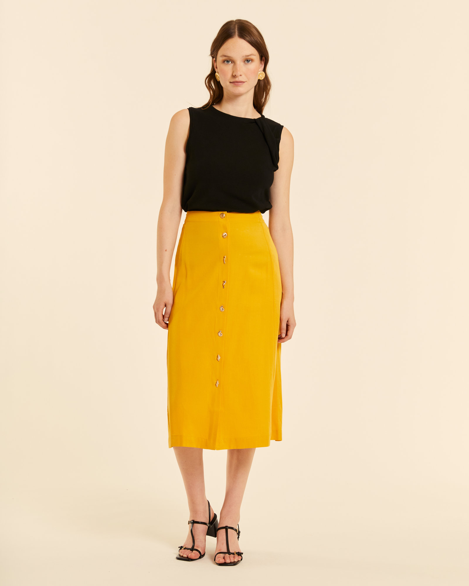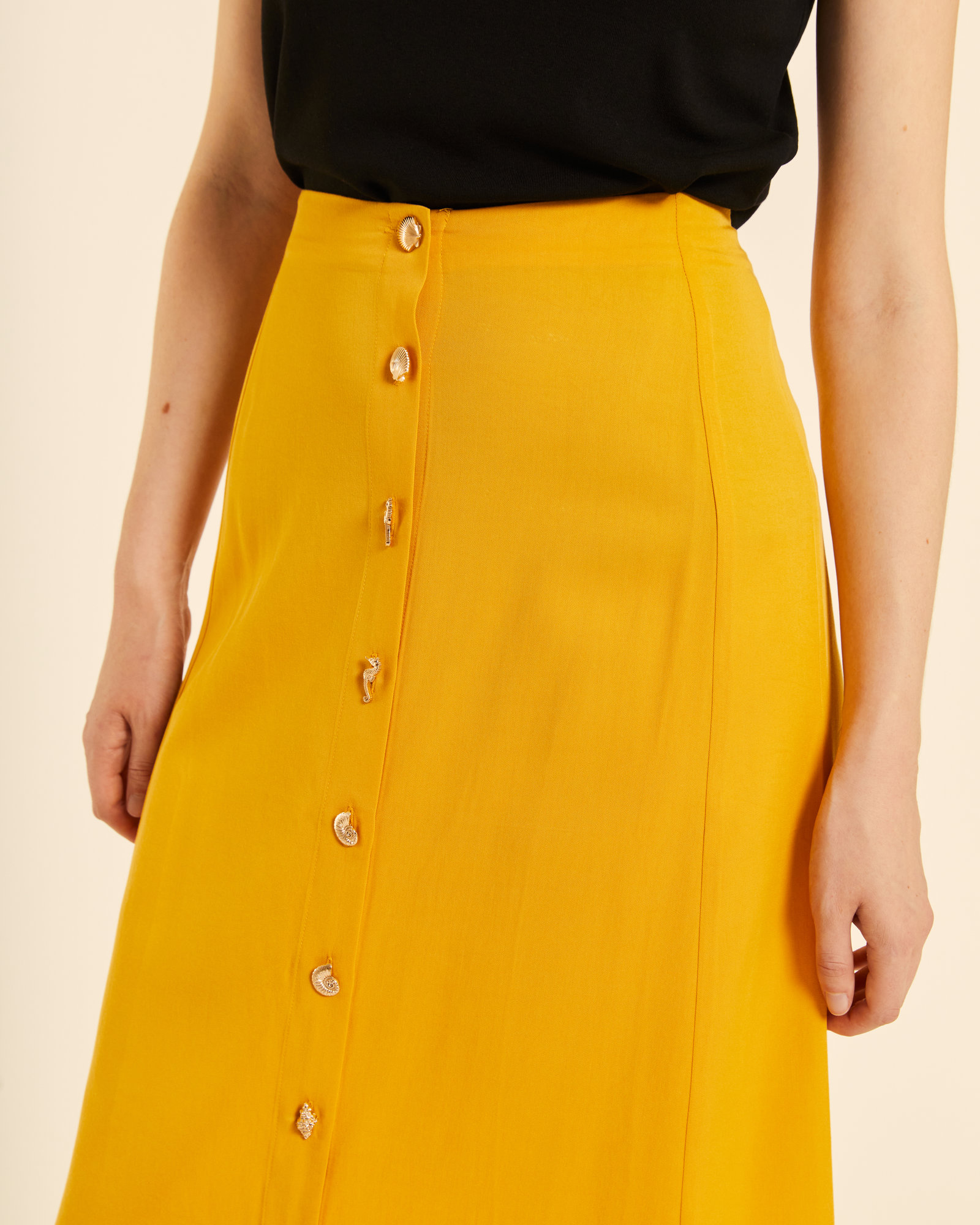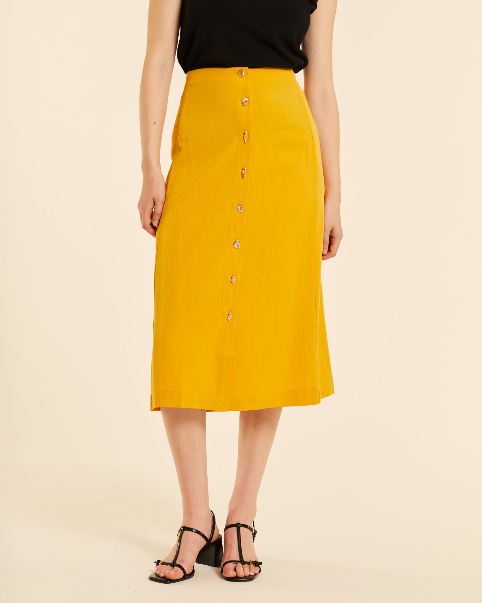 / Falda midi abotonada amarilla
