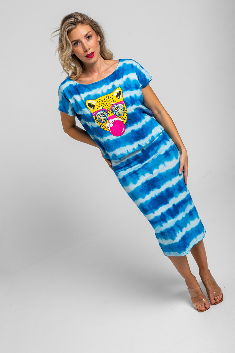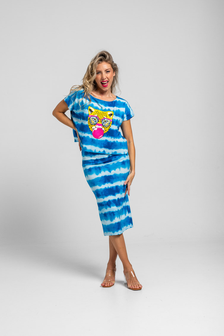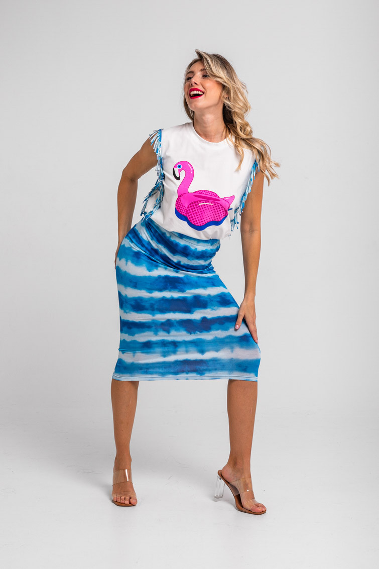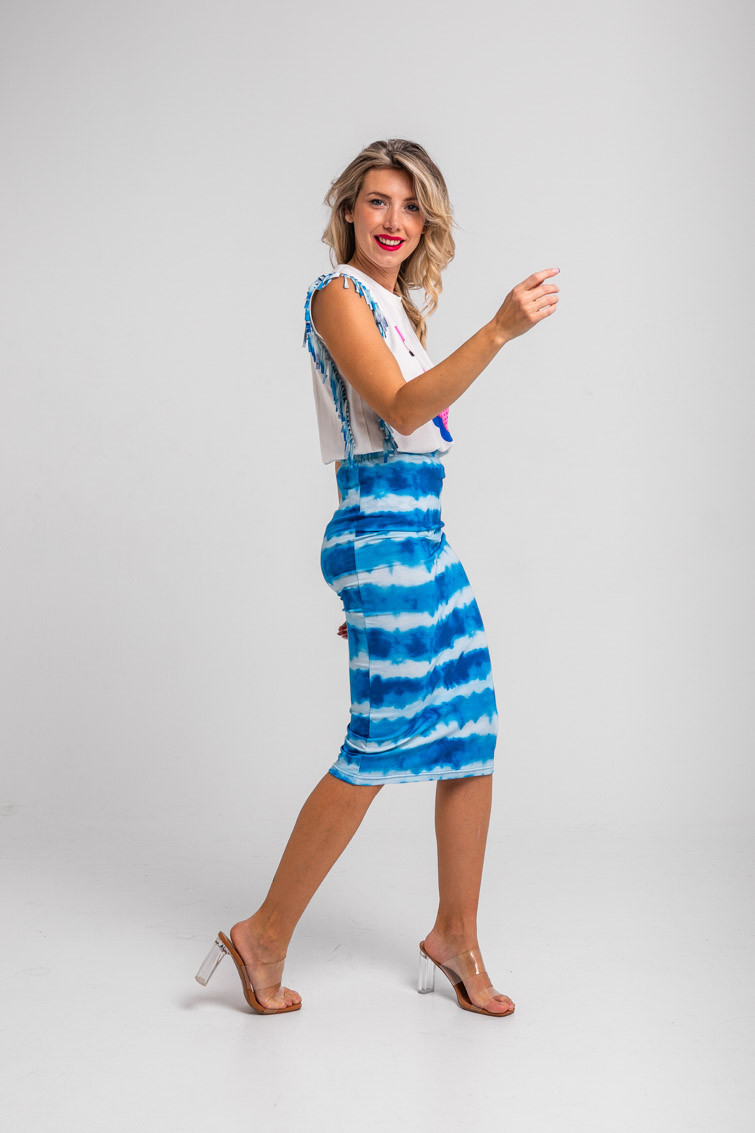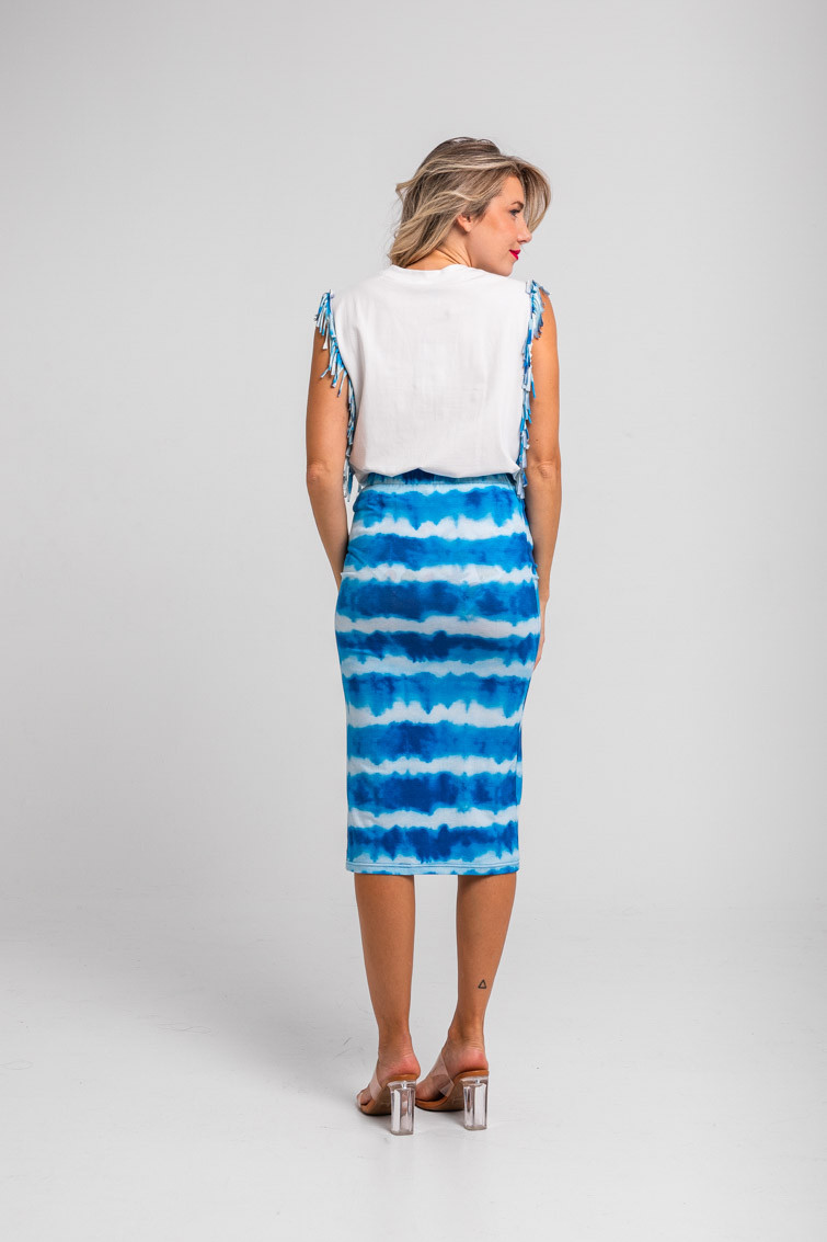 Pool party: al agua patos – Falda tubo midi elástica tie dye azul: Falda larga de tejido fluido elástica, corte recto y abertura trasera. – 95% Algodón y 5% Elastán. – Lavar a máquina en agua fría. No usar blanqueador. No usar secadora. Secar colgado a la sombra. Planchado a temperatura baja, por debajo de 100 ºC. Planchar del revés. No dejar la plancha parada sobre la prenda. Lavar con colores similares. – TALLA XS: Medida de la cintura 34 cm, medida de la cadera 34 cm y largo del cuerpo 72,5 cm.TALLA S: Medida de la cintura 36 cm, medida de la cadera 36 cm y largo del cuerpo 74 cm.TALLA M: Medida de la cintura 38 cm, medida de la cadera 38 cm y largo del cuerpo 75,5 cm.TALLA L: Medida de la cintura 40 cm, medida de la cadera 40 cm y largo del cuerpo 77 cm. – Las medidas de las prendas pueden presentar pequeñas variaciones debido al proceso de producción de hasta 2 cm. – Lolina ha realizado un gran esfuerzo para mostrar los colores de las prendas de la forma más cercana a la realidad posible. No obstante, queremos que tengas en cuenta que el color de las prendas que aparecen en pantalla puede estar sujeto a variaciones dependiendo de la calidad de tu ordenador o smartphone.