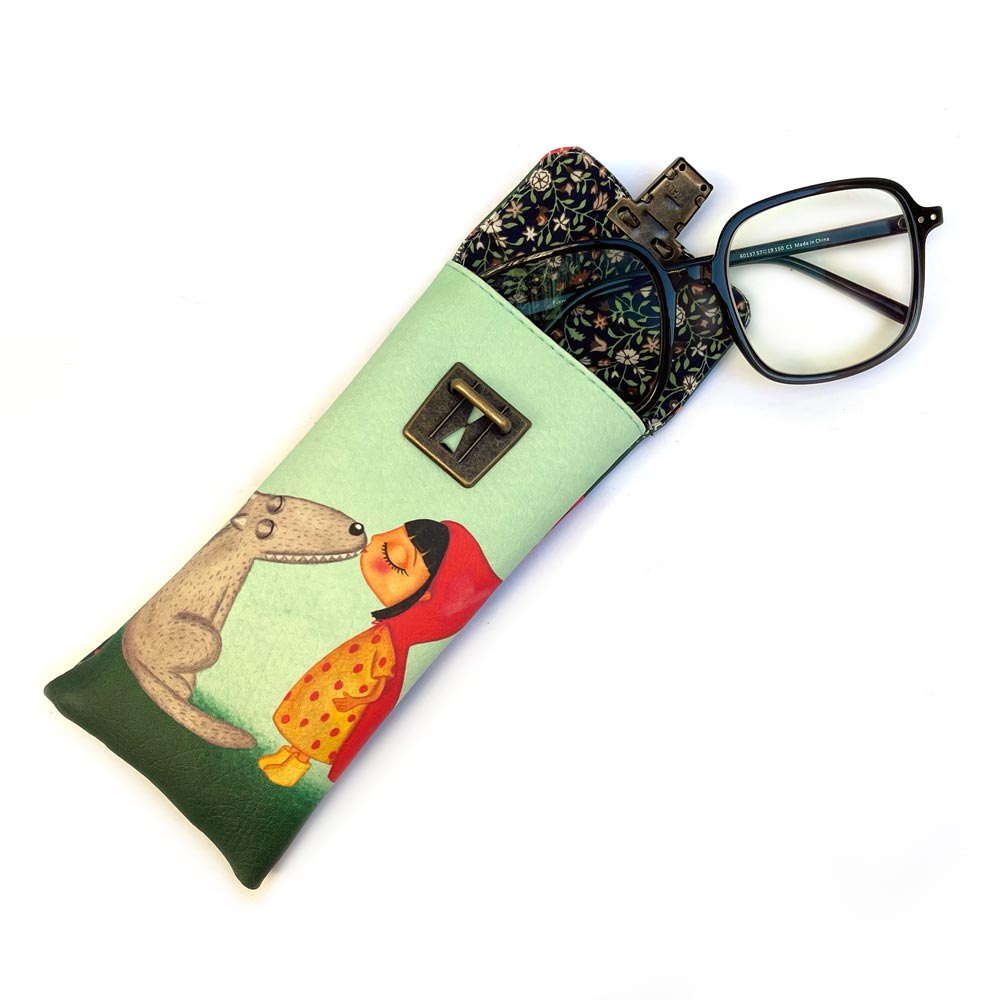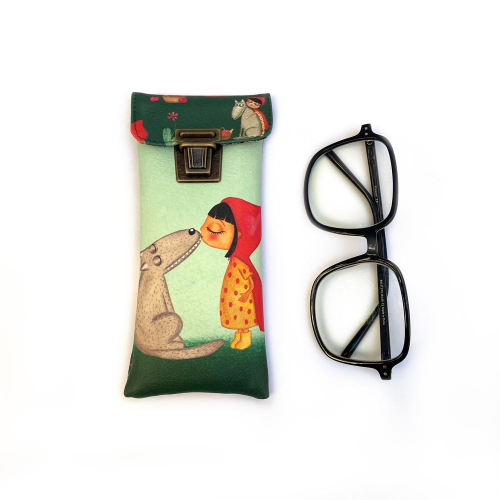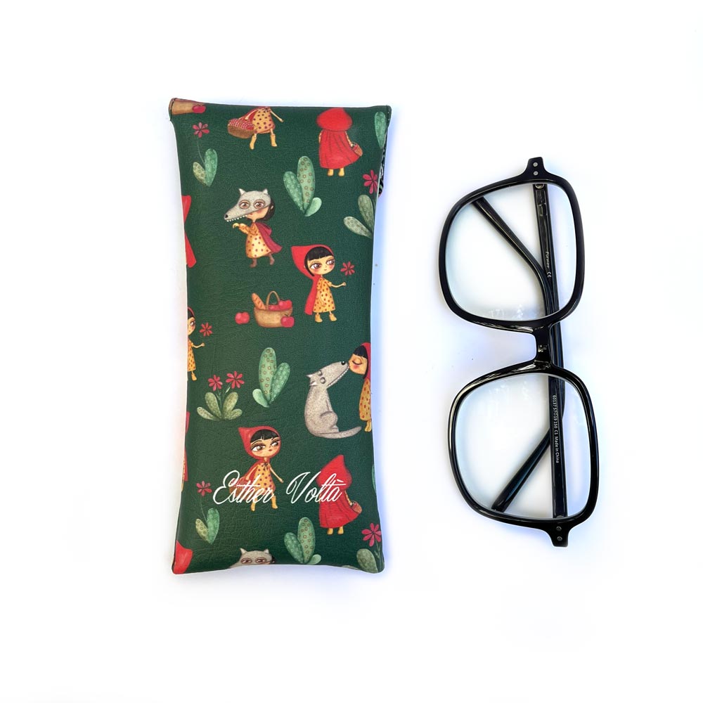 Funda para Gafas ilustrada por Esther Voltà. Cierre Tic Tac Medidas: 8,5 cm Ancho x 18,5 cm Alto Composición: Exterior: Polipiel de alta calidad Interior: Todos los estuches y fundas están forrados con preciosas telas de algodón. Los estampados pueden variar.
