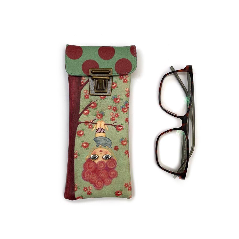Funda para Gafas ilustrada por Esther Voltà. Cierre Tic Tac Medidas: 8,5 cm Ancho x 18,5 cm Alto Composición: Exterior: Polipiel de alta calidad Interior: Todos los estuches y fundas están forrados con preciosas telas de algodón. Los estampados pueden variar.