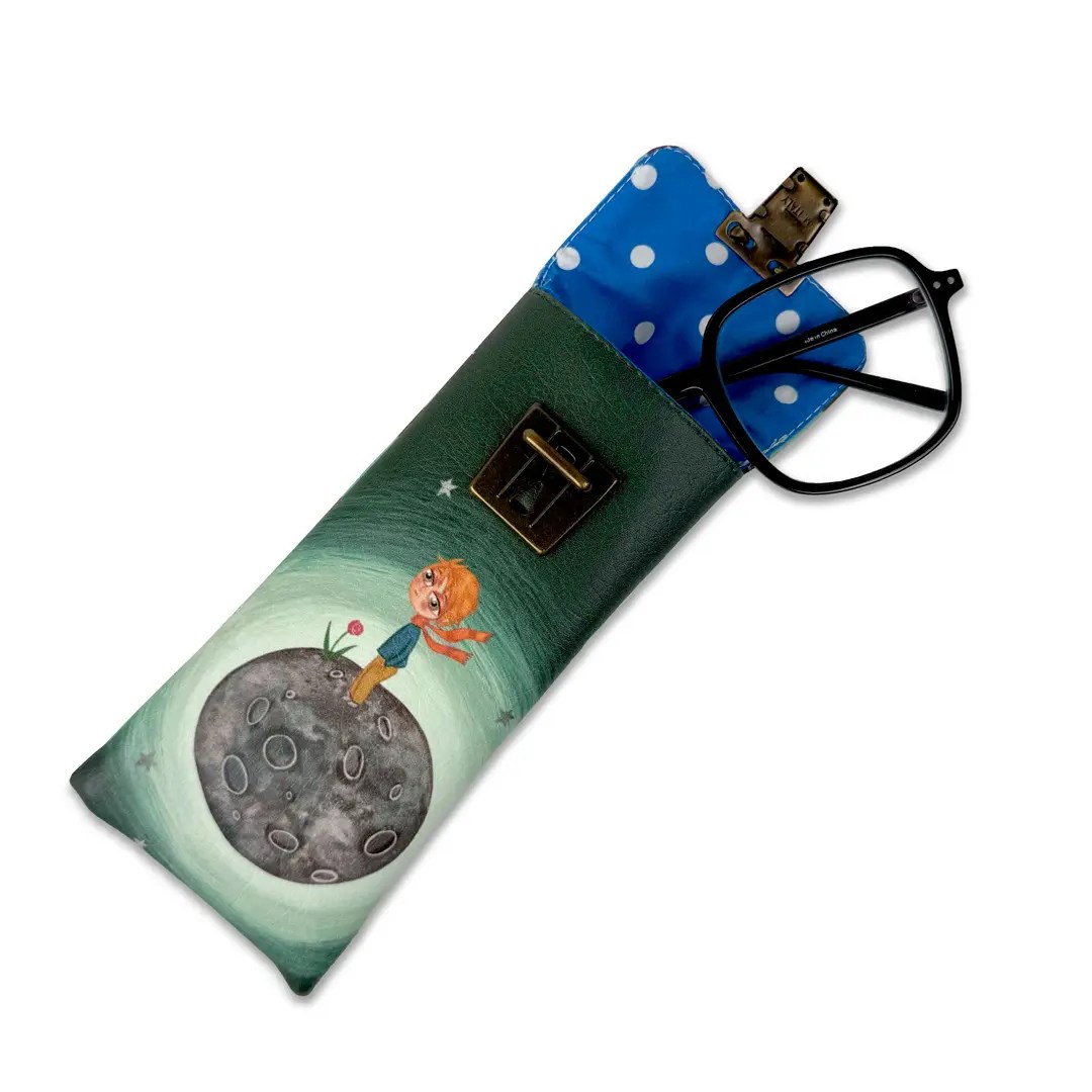 Funda para Gafas ilustrada por Esther Voltà. Colección Reto. Cierre Tic Tac Medidas: 8,5 cm Ancho x 18,5 cm Alto Composición: Exterior: Polipiel de alta calidad Interior: Todos los estuches y fundas están forrados con preciosas telas de algodón. Los estampados pueden variar. Producto original de Esther Volta. PVP recomendado: 19.00 EUR.