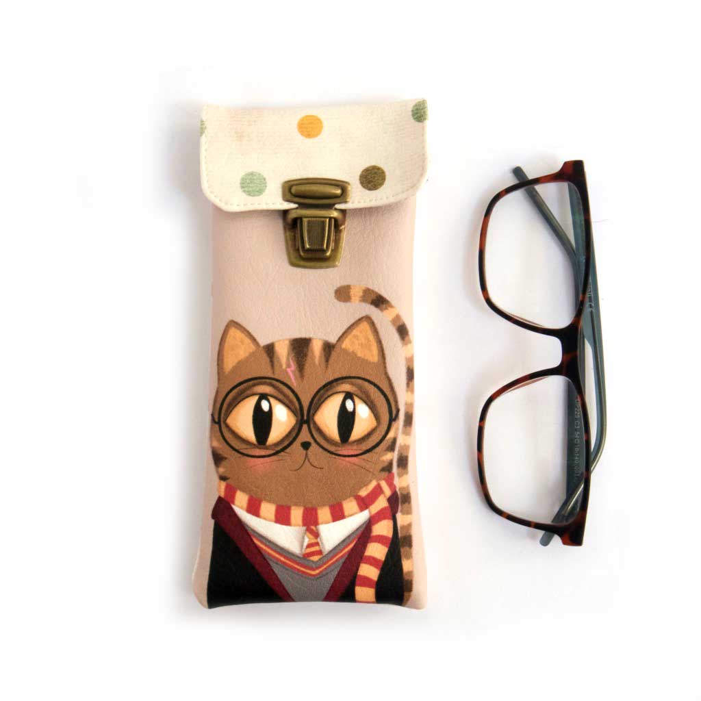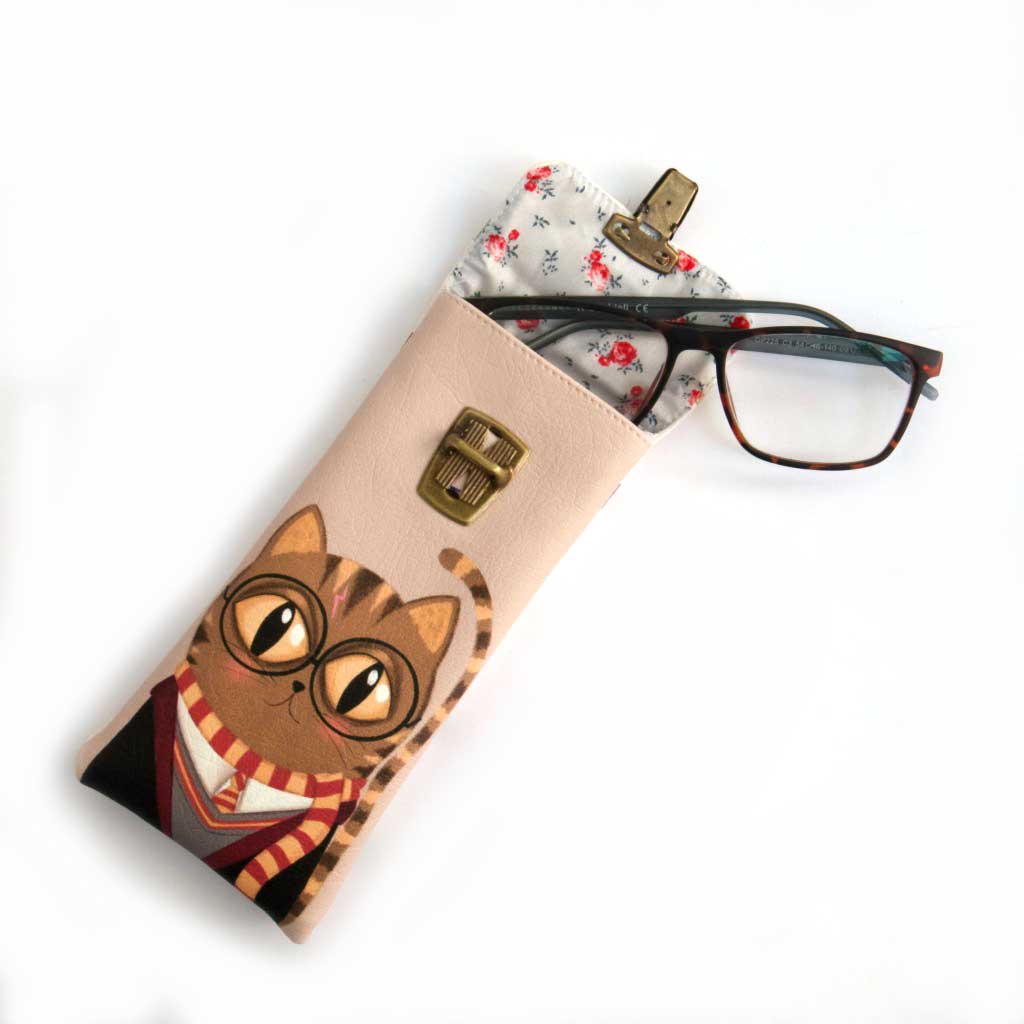 Funda para Gafas ilustrada por Esther Voltà. Cierre Tic Tac Medidas: 8,5 cm Ancho x 18,5 cm Alto Composición: Exterior: Polipiel de alta calidad Interior: Todos los estuches y fundas están forrados con preciosas telas de algodón. Los estampados pueden variar.