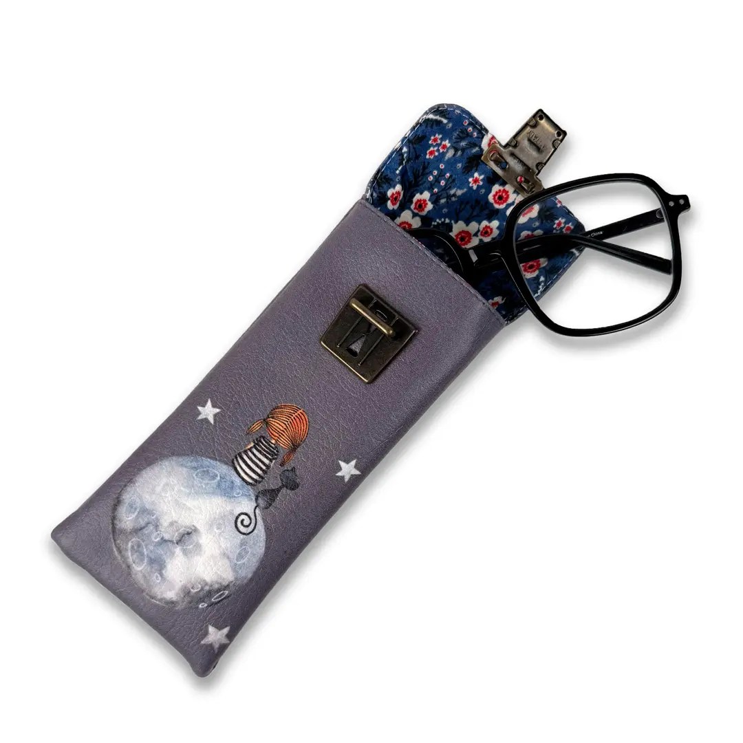 Funda para Gafas ilustrada por Esther Voltà. Colección Reto. Cierre Tic Tac. Medidas: 8,5 cm Ancho x 18,5 cm Alto Composición: Exterior: Polipiel de alta calidad Interior: Todos los estuches y fundas están forrados con preciosas telas de algodón. Los estampados pueden variar. Producto original de Esther Volta. PVP recomendado: 19.00 EUR.
