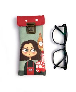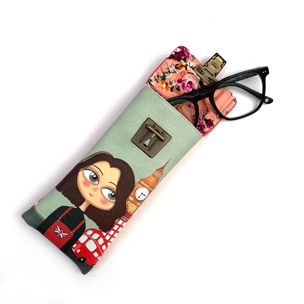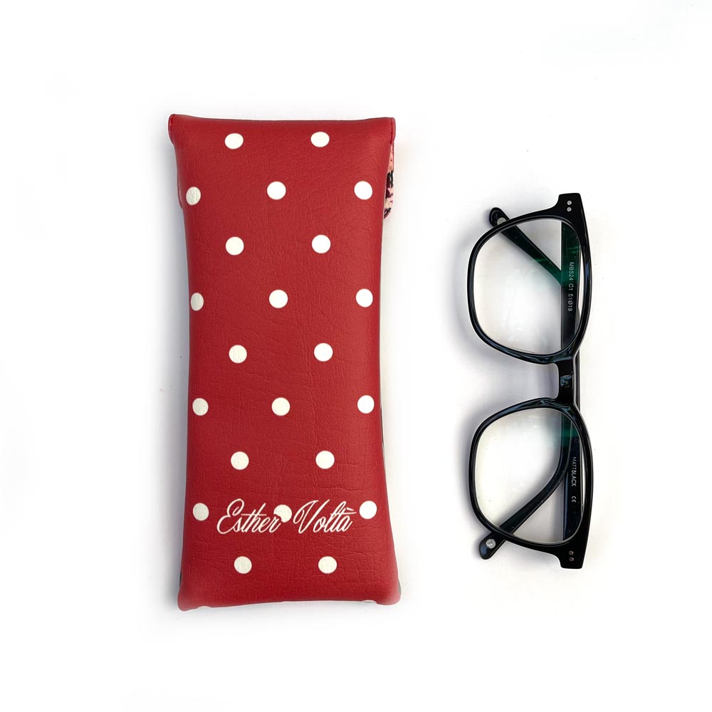 Funda para Gafas ilustrada por E sther Voltà. Cierre Tic Tac Medidas: 8,5 cm Ancho x 18,5 cm Alto Composición: Exterior: Polipiel de alta calidad Interior: Todos los estuches y fundas están forrados con preciosas telas de