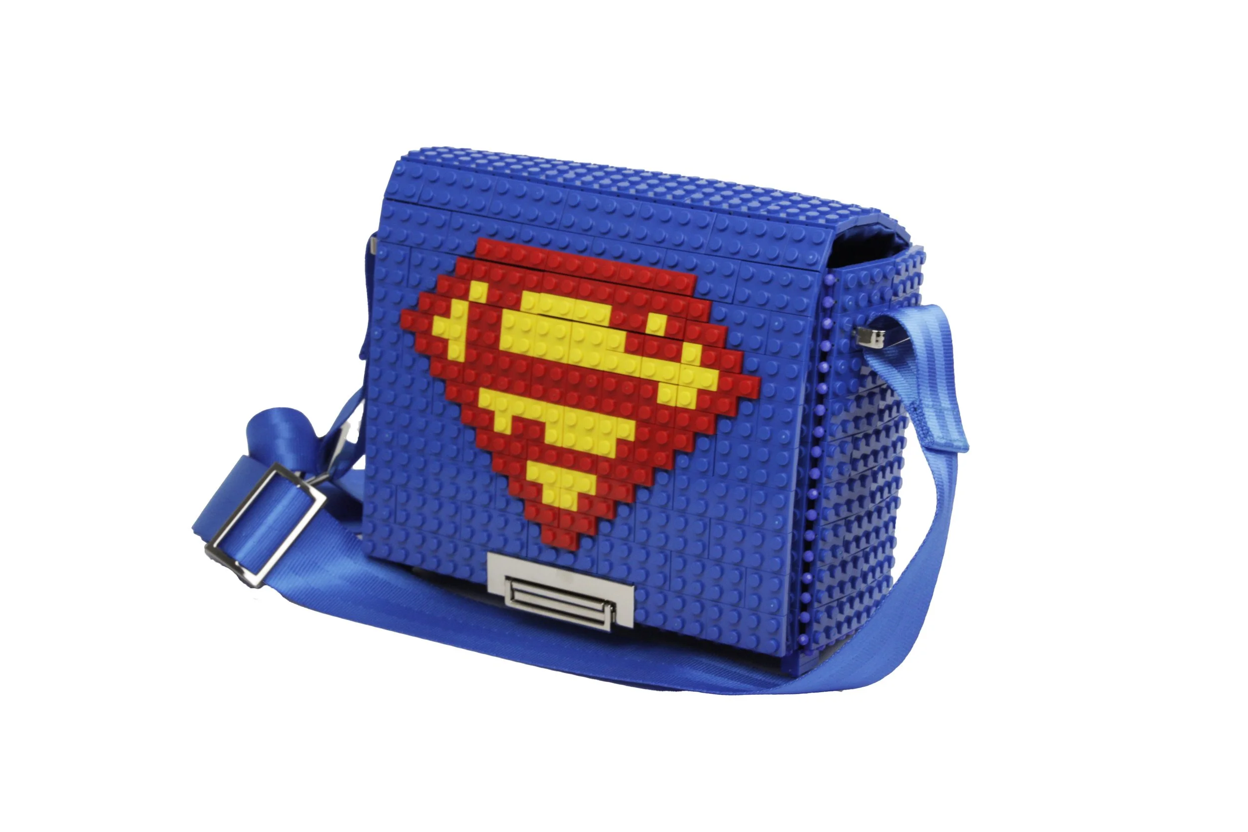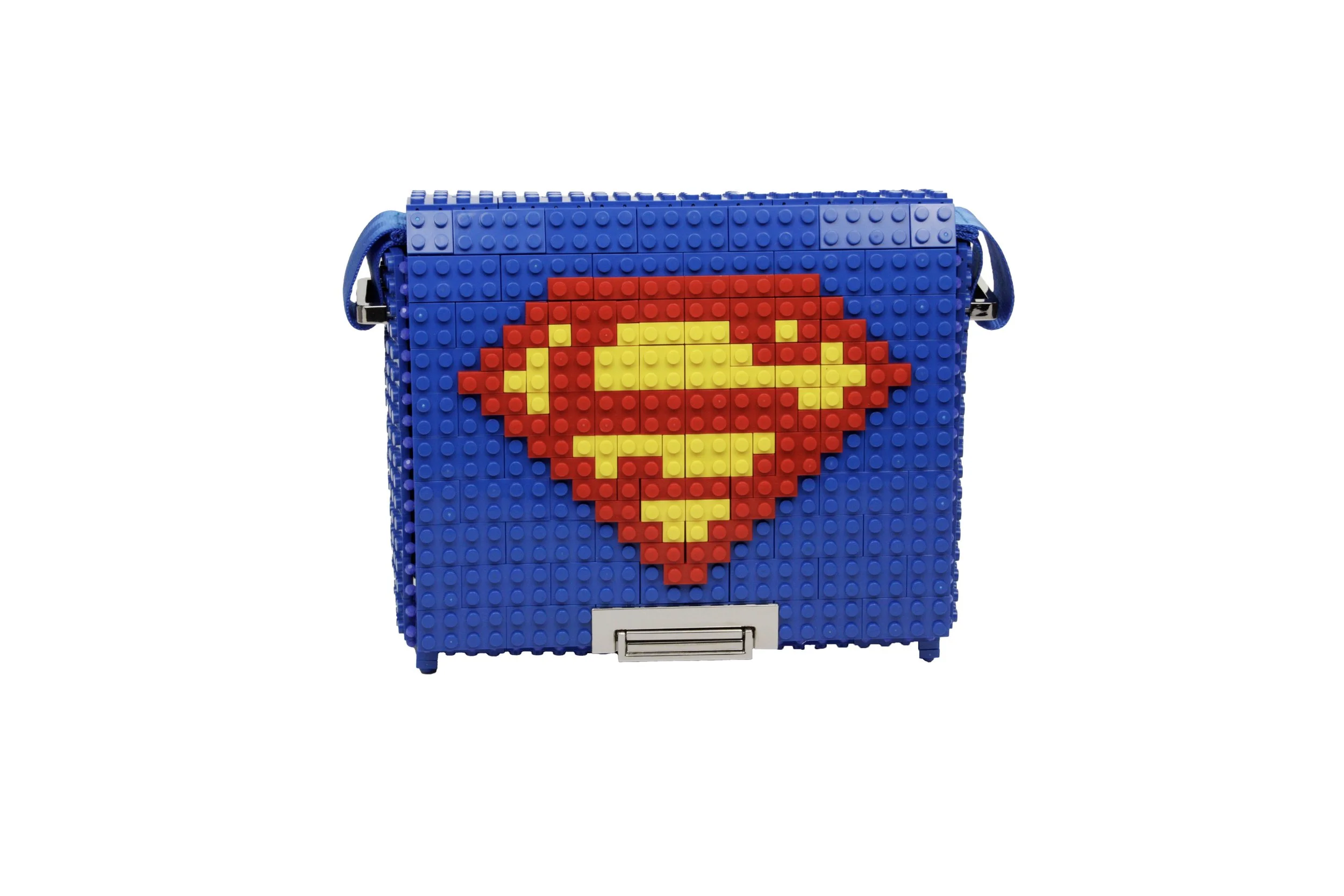 Squared bag with nylon strap in blue color customizing the design as the photo.We will ship you the bag with the design already assembled. The design blocks are in&out, so you can use them for this customization or any other, change your Bag&Block whenever you want and adapt it any time to your wish.Dimensions 24cm x 17cm x 10cm. Weight 480gr + 230gr leather & metal chain. 286 ABS Blocks hand assembled. Includes cotton dust bag, inside pocket and 90/150cm adjustable length nylon strap with metal details.Main composition: ABS blocks, glass beads, nylon strap and metallic accessories. Bag base assembled in India. Lining Composition: 100% Polyester satin. Made in India Weight: Bag 565gr within the nylon strap.Main Composition: ABS blocks, Glass beads, leather strap and Metallic accessories. Top design made in Spain. Add additional block packs to your order so you can customize your Bag&Block endless times, each design on this website includes the list of blocks needed and you can use our blocks or any standard brand.——————————————————————————————————————————Bolso cuadrado con solapa y cierre metálico con tapa en color azul con el diseño de la foto.El bolso se enviará con el dibujo ya montado para que lo puedas disfrutar desde el minuto cero, piensa que todos los diseños son de quita y pon, o sea que puedes cambiar el bolso siempre que quieras y adaptarlo a los colores o el estilo que lleves.Dimensiones 24cm x 17cm x 10cm. Peso 480gr+230gr la correa de cuero y cadena metálica. Formado por 286 bloques de ABS ensamblados a mano. Incluye funda guardapolvo de algodón, bolsillo interior, asa de nylon de longitud ajustable de 90 a 150 cm.Composición exterior: bloques de ABS, abalorios de cristal, correa de cuero y accesorios metálicos. Composición del forro interior: Raso 100% Poliéster. El dibujo de quita y pon se realiza en Zamora (España) y la base del bolso se realiza en Tamil Nadu (India).Puedes añadir más paquetes de bloques en tu pedido en este enlace, así podrás customizar tu bolso siempre que quieras, en cada diseño especificamos los paquetes de bloques necesarios, echa un vistazo a otros diseños que te gusten y podrás tener ambos en un solo bolso. Bag&Block es compatible con las piezas de otras marcas estándar de bloques de construcción.
