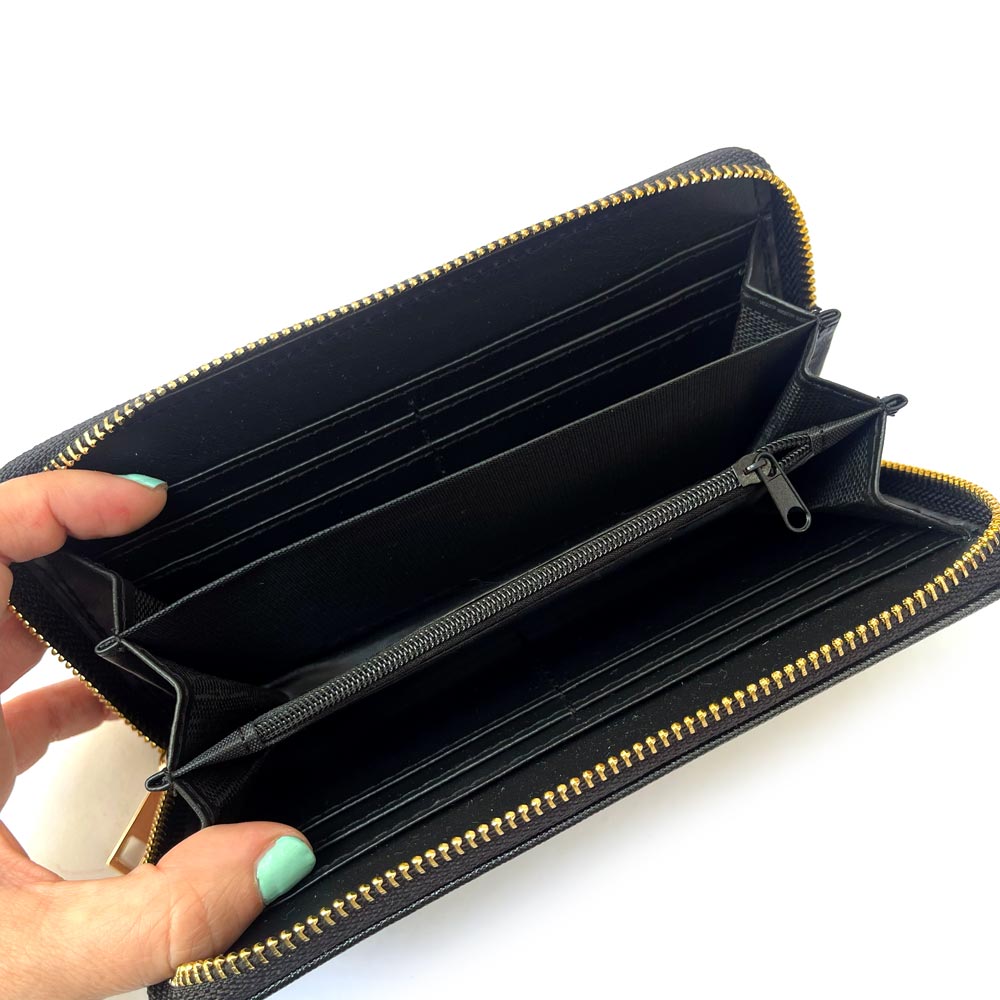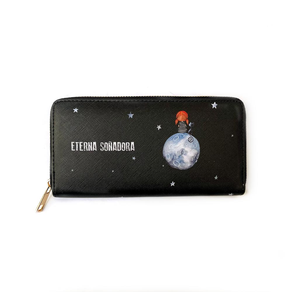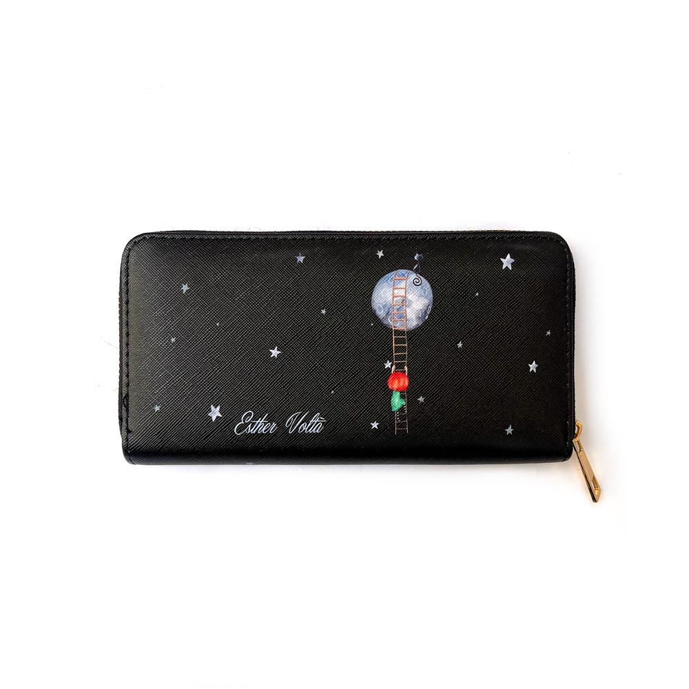 La colección Luna nace de un cuento y de una niña que aprendió a soñar sentada sobre la luna. Un homenaje a la imaginación, a la infancia y a todo lo que brilla cuando creemos. Billetera ilustrada por Esther Voltà. Cierre Cremallera. Con 13 departamentos para tarjetas y un bolsillo para monedas Medidas: 19 cm Ancho x 10 cm Alto Composición: Polipiel de alta calidad (Ecopiel o piel vegana) Producto original de Esther Volta. PVP recomendado: 27.50 EUR.
