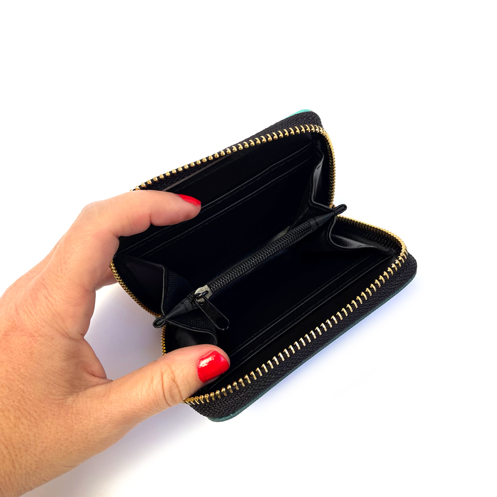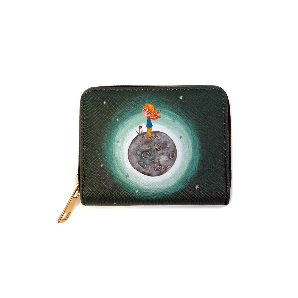 Inspirada en El Principito , esta colección nos recuerda que lo esencial siempre se mira con el corazón. Billetera ilustrada por Esther Voltà. Cierre Cremallera. Con 6 departamentos para tarjetas y un bolsillo para monedas Medidas: 8,5 cm Ancho x 11 cm Alto Composición: Polipiel de alta calidad (Ecopiel o piel vegana) Producto original de Esther Volta. PVP recomendado: 22.50 EUR.