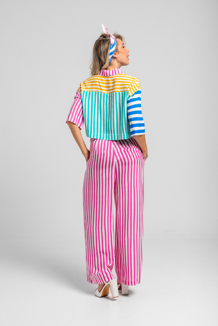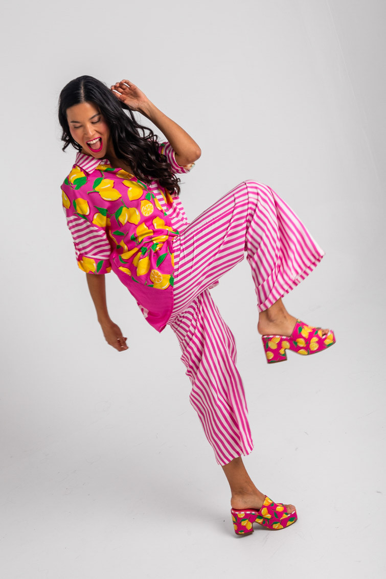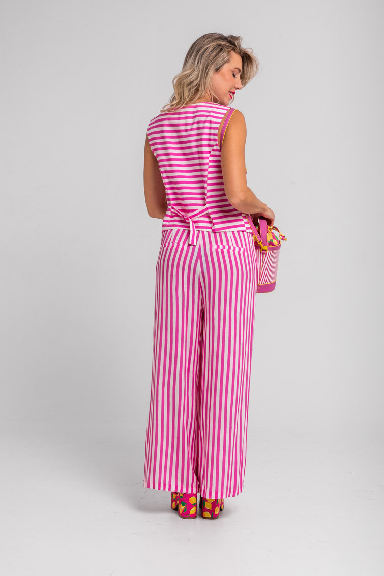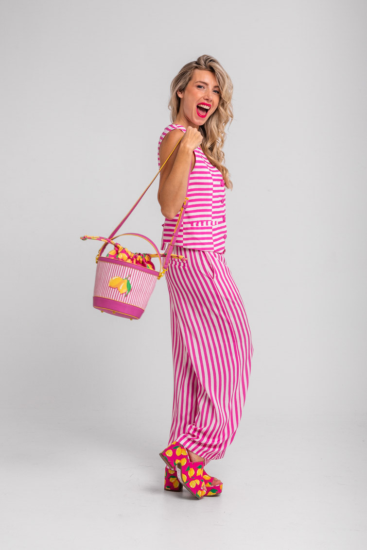 Limoncello: ácido, rico y cargadito – Pantalón culotte de rayas blancas y rosas: Pantalón de tiro alto con bolsillos delanteros, falsos bolsillos en espalda, pernera ancha y cierre frontal con cremallera, botón interior y gancho. – 100% Viscosa. – Lavar a máquina en agua fría en centrifugado corto. No usar blanqueador. No usar secadora. Secar colgado a la sombra. Planchado a temperatura baja, por debajo de 100 ºC. Planchar del revés. No dejar la plancha parada sobre la prenda. Lavar con colores similares. – TALLA XS: Medida de la cintura 32 cm, medida de la cadera 44 cm y largo del cuerpo 96 cm.TALLA S: Medida de la cintura 34 cm, medida de la cadera 46 cm y largo del cuerpo 96 cm.TALLA M: Medida de la cintura 36 cm, medida de la cadera 48 cm y largo del cuerpo 96 cm.TALLA L: Medida de la cintura 38 cm, medida de la cadera 50 cm y largo del cuerpo 96 cm.TALLA XL: Medida de la cintura 40 cm, medida de la cadera 52 cm y largo del cuerpo 96 cm.TALLA XXL: Medida de la cintura 42 cm, medida de la cadera 54 cm y largo del cuerpo 96 cm. – Las medidas de las prendas pueden presentar pequeñas variaciones debido al proceso de producción de hasta 2 cm. – Lolina ha realizado un gran esfuerzo para mostrar los colores de las prendas de la forma más cercana a la realidad posible. No obstante, queremos que tengas en cuenta que el color de las prendas que aparecen en pantalla puede estar sujeto a variaciones dependiendo de la calidad de tu ordenador o smartphone.