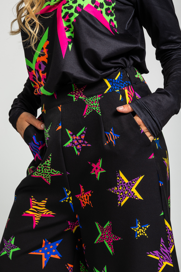 Shiny Girl: y brillando con luz propia. – Pantalón fluido: Pantalón con pernera ancha de tela fluida. Cintura talle alto con goma ancha elástica en la parte trasera, cremallera lateral y bolsillos laterales. – 100% Poliéster. – Lavar a máquina en agua fría. No usar blanqueador. No usar secadora. Secar colgado a la sombra. Planchado a temperatura baja, por debajo de 100 ºC. Planchar del revés. No dejar la plancha parada sobre la prenda. Lavar con colores similares. – TALLA XS: Medida de la cintura 33 cm, medida de la cadera 45 cm y largo del cuerpo 92.5 cm. TALLA S: Medida de la cintura 35 cm, medida de la cadera 47 cm y largo del cuerpo 94 cm. TALLA M: Medida de la cintura 37 cm, medida de la cadera 49 cm y largo del cuerpo 95.5 cm. TALLA L: Medida de la cintura 39 cm, medida de la cadera 51 cm y largo del cuerpo 97 cm. TALLA XL: Medida de la cintura 41 cm, medida de la cadera 53 cm y largo del cuerpo 98.5 cm. TALLA XXL: Medida de la cintura 43 cm, medida de la cadera 55 cm y largo del cuerpo 100 cm. Las medidas de las prendas pueden presentar pequeñas variaciones debido al proceso de producción de hasta 2 cm. – Lolina ha realizado un gran esfuerzo para mostrar los colores de las prendas de la forma más cercana a la realidad posible. No obstante, queremos que tengas en cuenta que el color de las prendas que aparecen en pantalla puede estar sujeto a variaciones dependiendo de la calidad de tu ordenador o smartphone.