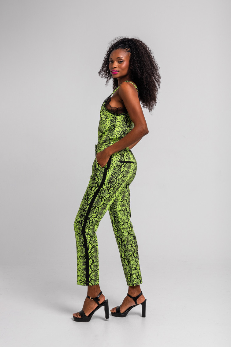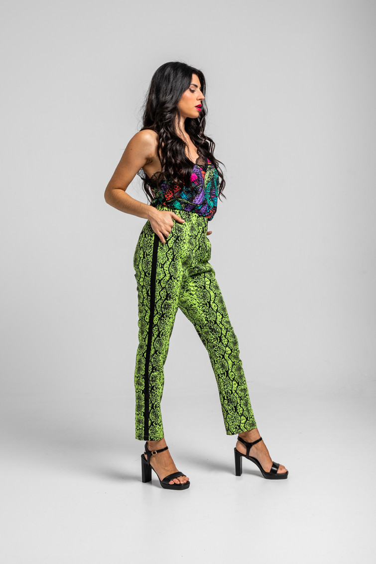 Snake: serpenteando por la vida – Pantalón Pitillo Serpientes animal print lima: Pantalón pitillo de tejido fluido con cuerpo con cintura de talle alto con goma trasera, abertura central con trabilla que cruza y cremallera. Bolsillos laterales. Tejido con cuerpo. – 100% Poliéster. – Lavar a máquina en agua fría. No usar blanqueador. No usar secadora. Secar colgado a la sombra. Planchado a temperatura baja, por debajo de 100 ºC. Planchar del revés. No dejar la plancha parada sobre la prenda. Lavar con colores similares. – TALLA XS: Medidas de cintura 32 cm, cadera 46 cm y largo 94,5 cm. TALLA S: Medidas de cintura 34 cm, cadera 48 cm y largo 96 cm. TALLA M: Medidas de cintura 36 cm, cadera 50 cm y largo 97,5 cm. TALLA L: Medidas de cintura 38 cm, cadera 52 cm y largo 99 cm. TALLA XL: Medidas de cintura 40 cm, cadera 54 cm y largo 100,5 cm. – Las medidas de las prendas pueden presentar pequeñas variaciones debido al proceso de producción de hasta 2 cm. – Lolina ha realizado un gran esfuerzo para mostrar los colores de las prendas de la forma más cercana a la realidad posible. No obstante, queremos que tengas en cuenta que el color de las prendas que aparecen en pantalla puede estar sujeto a variaciones dependiendo de la calidad de tu ordenador o smartphone.