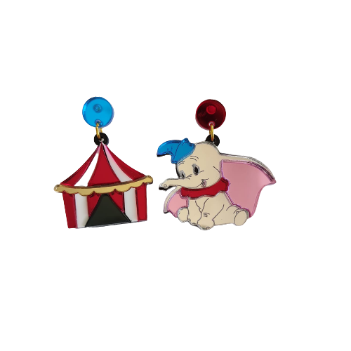 El pendiente metacrilato mini DUMBO PESA: 4.25g y MIDE: 4.2 cm x 3.5 cm. APROX
