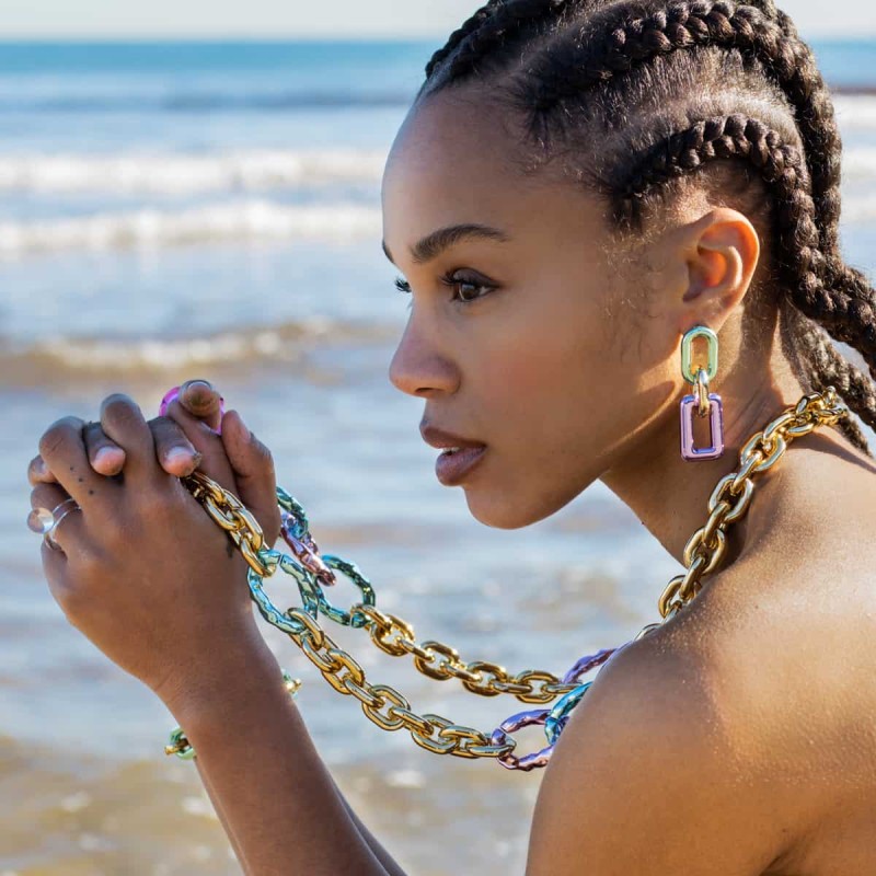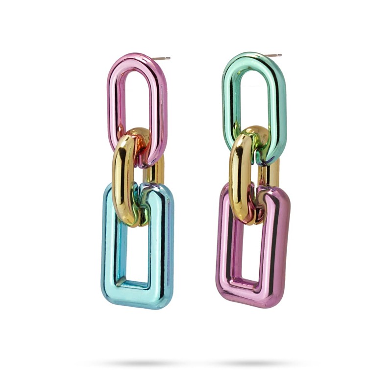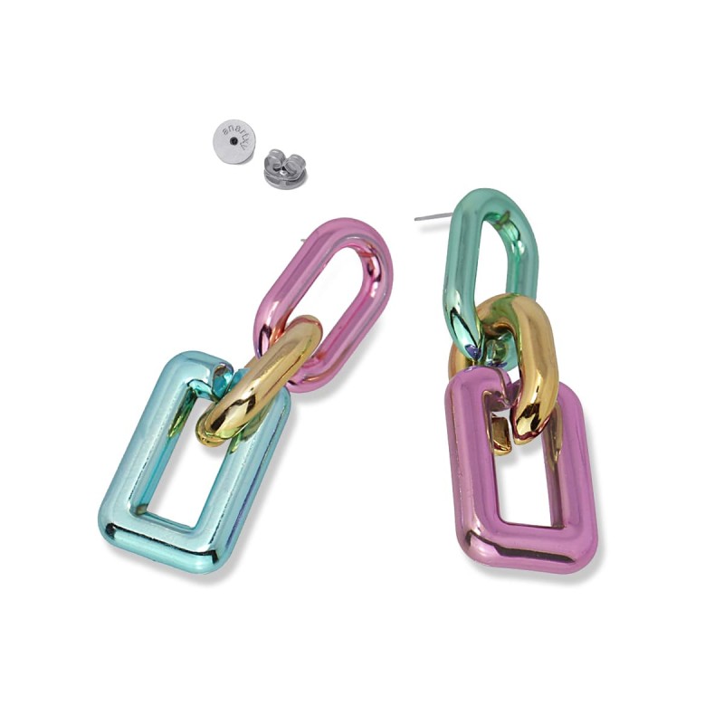 Pendientes largos realizados en plástico reciclado. Diseño tres eslabones