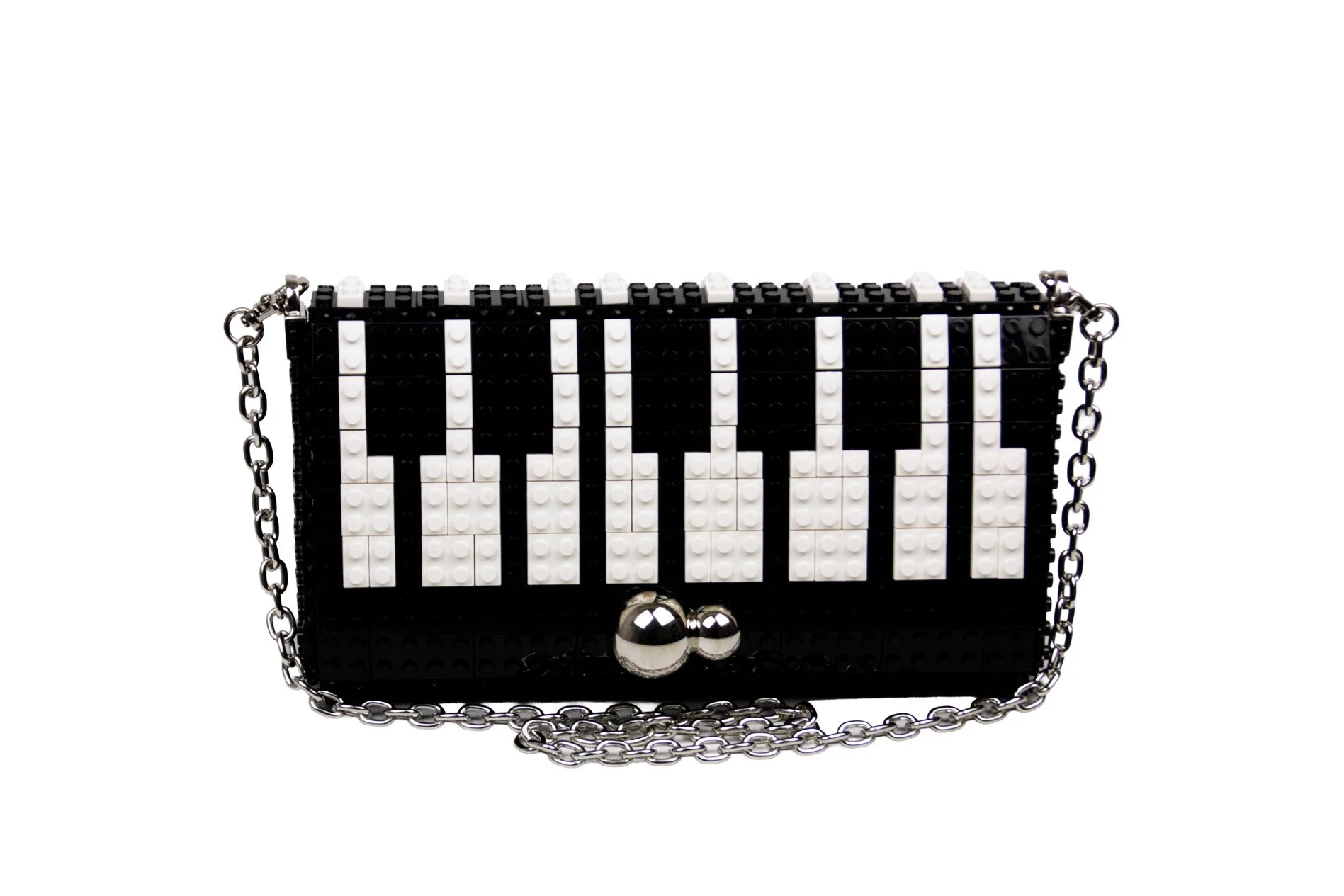Small Squared Clutch with Stones Clasp and metallic chain, in black color customizing the design as the photo.We will ship you the bag with the design already assembled. The design blocks are in&out, so you can use them for this customization or any other, change your Bag&Block whenever you want and adapt it any time to your wish.Dimensions 25cm x 13cm x 6cm. Weight 370gr + 130gr metal chain. Fits well inside any Iphone. 196 ABS Blocks Hand Assembled + In&Out top blocks. Includes Cotton Dust Bag, inside pocket and In&Out 105cm length Metal Chain.Main Composition: ABS blocks, Glass beads and Metallic accessories. Lining Composition:100%Polyester Satin. Top design made in Zamora (Spain). Bag base assembled in Tamil Nadu (India)..Please click here to see inside and outside details from the bag.We can send you the chain length you wish according your body and how you like to wear your handbags, please check on this link our suggested lengths and add to the cart the length you wish, otherwise we will send you the standard length for this bag (105 cm).If you wish you can add an extra strap to your cart in this link, this way you can have a long and a short strap to change whenever you want.Add additional block packs to your order so you can customize your Bag&Block endless times, each design on this website includes the list of blocks needed and you can use our blocks or any standard brand.——————————————————————————————————————————Cartera con forma cuadrada, cierre metálico con forma de piedras y cadena metálica de quita y pon en color negro con el diseño de la foto.El bolso se enviará con el dibujo ya montado para que lo puedas disfrutar desde el minuto cero, piensa que todos los diseños son de quita y pon, o sea que puedes cambiar el bolso siempre que quieras y adaptarlo a los colores o el estilo que lleves.Dimensiones 25cm x 13cm x 6cm. Peso 370gr + 130gr la cadena metálica. Formado por 266 bloques de ABS ensamblados a mano. Incluye funda guardapolvo de algodón, bolsillo interior y cadena metálica de quita y pon de 105 cm de longitud, si desea otro largo o un asa adicional por favor contáctenos al realizar el pedido.Composición exterior: bloques de ABS, abalorios de cristal y accesorios metálicos. Composición del forro interior: Raso 100% Poliéster. El dibujo de quita y pon se realiza en Zamora (España) y la base del bolso se realiza en Tamil Nadu (India).Pulse aquí para ver detalles internos y externos del bolso.Te podemos enviar el bolso con el largo de cadena que desees, por favor mira en este enlace las medidas que recomendamos e introduce en el carrito la medida de cadena que desees. Si no eliges un largo especial en este link te enviaremos la cadena de 105cm.Si quieres una cadena extra añádela al carrito en este link y te enviaremos dos cadenas, así puedes ponerle asa corta o asa larga cuando quieras a tu cartera.Puedes añadir más paquetes de bloques en tu pedido en este enlace, así podrás customizar tu bolso siempre que quieras, en cada diseño especificamos los paquetes de bloques necesarios, echa un vistazo a otros diseños que te gusten y podrás tener ambos en un solo bolso. Bag&Block es compatible con las piezas de otras marcas estándar de bloques de construcción.