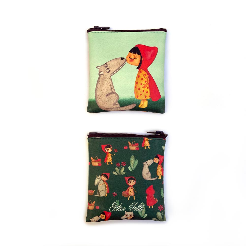 Portamonedas ilustrado por Esther Voltà. Colección RETO. Cierre Cremallera. Medidas: 10 cm Ancho x 10 cm Alto Composición: Exterior: Polipiel de alta calidad