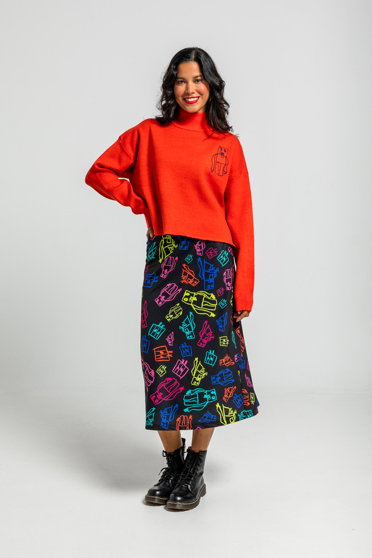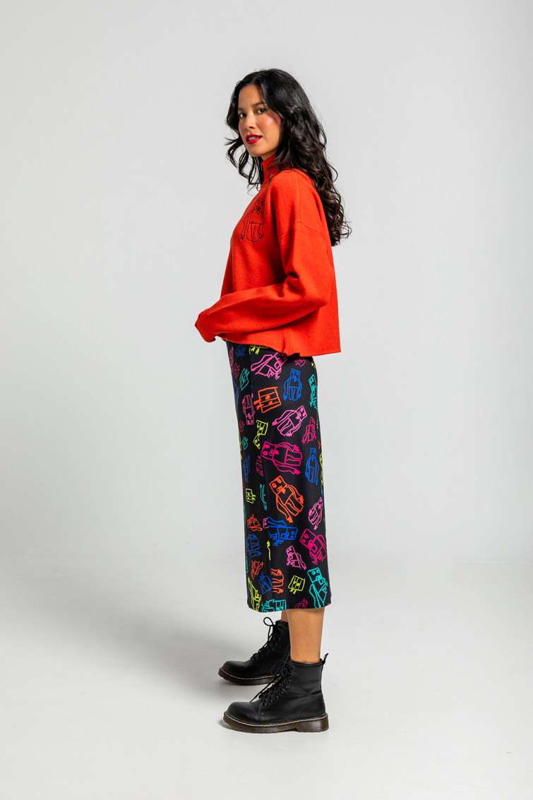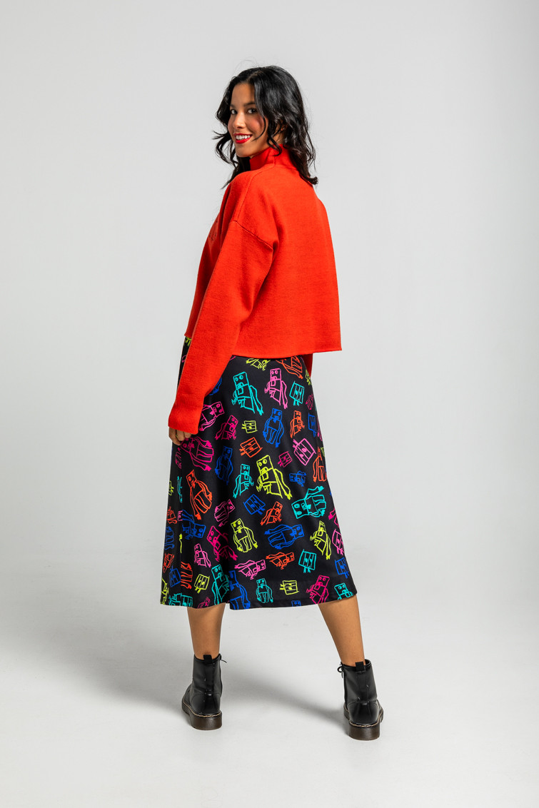 We are connected: porque todos ellos, juntos se recargan las baterías. Este robotito es obra de uno de los maravillosos niños del centro de acogida de Granada al que irán destinados parte de los beneficios de esta colección. – Suéter crop: Jersey en punto suave con ilustración vectorial tejida. Modelo de corte holgado y tipo crop con cuello perkins, hombros marcadamente caídos y mangas anchas. – 41% Acrílico, 30% Poliamida y 29% Poliéster. – Lavar a máquina en agua fría. No usar blanqueador. No usar secadora. Secar colgado a la sombra. No planchar. – TALLA XS: Medida de pecho 56 cm, medida de largo de manga 50 cm y largo del cuerpo 48,5 cm. TALLA S: Medida de pecho 58 cm, medida de largo de manga 52 cm y largo del cuerpo 50 cm. TALLA M: Medida de pecho 60 cm, medida de largo de manga 54 cm y largo del cuerpo 51,5 cm. TALLA L: Medida de pecho 62 cm, medida de largo de manga 56 cm y largo del cuerpo 53 cm. Las medidas de las prendas pueden presentar pequeñas variaciones debido al proceso de producción de hasta 2 cm. – Lolina ha realizado un gran esfuerzo para mostrar los colores de las prendas de la forma más cercana a la realidad posible. No obstante, queremos que tengas en cuenta que el color de las prendas que aparecen en pantalla puede estar sujeto a variaciones dependiendo de la calidad de tu ordenador o smartphone.