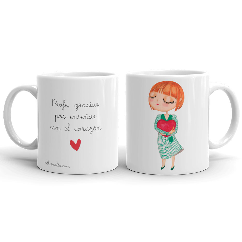 Taza con ilustración de la colección reto, ilustrada por Esther Voltà. La cerámica es de alta calidad, y el dibujo está sublimado, por lo que la