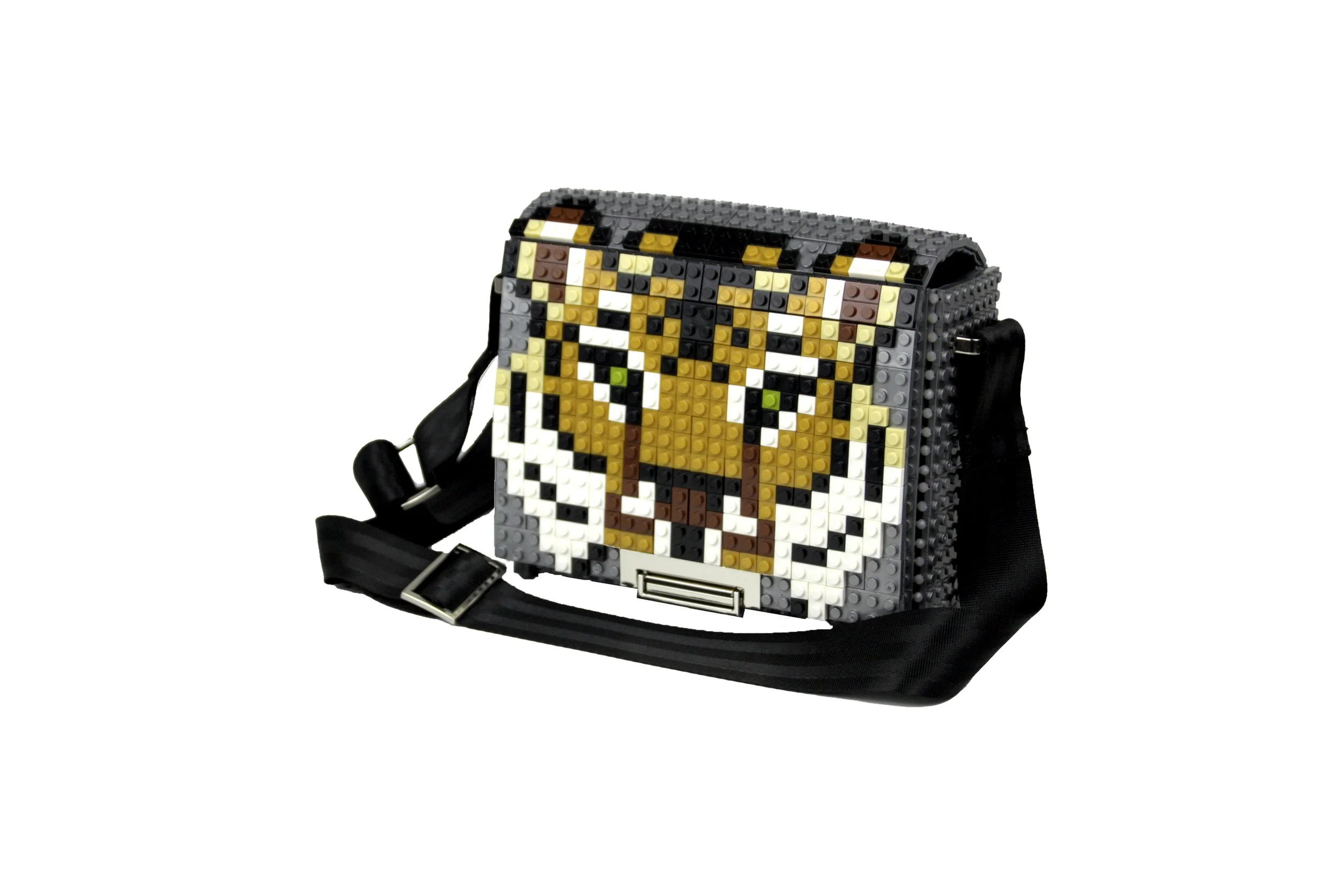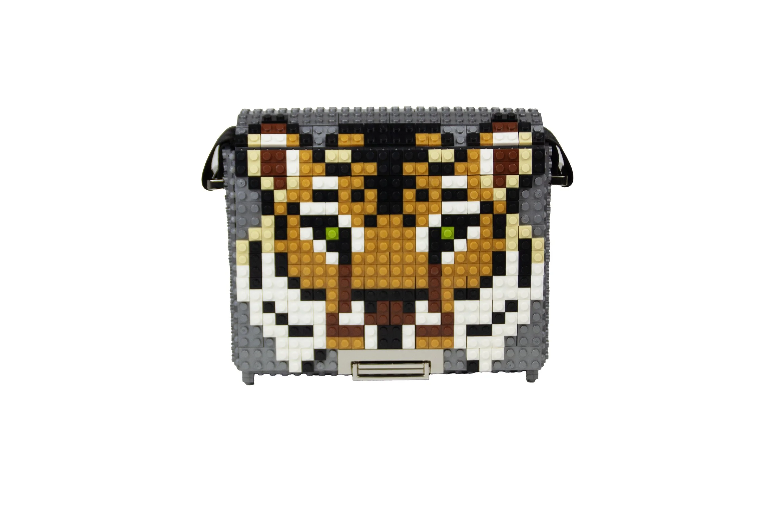 Squared bag with nylon strap in silver color customizing the design as the photo.We will ship you the bag with the design already assembled. The design blocks are in&out, so you can use them for this customization or any other, change your Bag&Block whenever you want and adapt it any time to your wish.Dimensions 24cm x 17cm x 10cm. Weight 480gr + 230gr leather & metal chain. 286 ABS Blocks hand assembled. Includes cotton dust bag, inside pocket and 90/150cm adjustable length nylon strap with metal details.Main composition: ABS blocks, glass beads, nylon strap and metallic accessories.Lining Composition: 100% Polyester satin. Made in IndiaWeight: Bag 565gr within the nylon strap.Main Composition: ABS blocks, Glass beads, leather strap and Metallic accessories. Lining Composition: 100%Polyester Satin. Top design made in Spain. Bag base assembled in India.Add additional block packs to your order so you can customize your Bag&Block endless times, each design on this website includes the list of blocks needed and you can use our blocks or any standard brand.——————————————————————————————————————————Bolso cuadrado con solapa y cierre metálico con tapa en color plateado con el diseño de la foto.El bolso se enviará con el dibujo ya montado para que lo puedas disfrutar desde el minuto cero, piensa que todos los diseños son de quita y pon, o sea que puedes cambiar el bolso siempre que quieras y adaptarlo a los colores o el estilo que lleves.Dimensiones 24cm x 17cm x 10cm. Peso 480gr+230gr la correa de cuero y cadena metálica. Formado por 286 bloques de ABS ensamblados a mano. Incluye funda guardapolvo de algodón, bolsillo interior, asa de nylon de longitud ajustable de 90 a 150 cm.Composición exterior: bloques de ABS, abalorios de cristal, correa de cuero y accesorios metálicos. Composición del forro interior: Raso 100% Poliéster. El dibujo de quita y pon se realiza en Zamora (España) y la base del bolso se realiza en Tamil Nadu (India).Puedes añadir más paquetes de bloques en tu pedido en este enlace, así podrás customizar tu bolso siempre que quieras, en cada diseño especificamos los paquetes de bloques necesarios, echa un vistazo a otros diseños que te gusten y podrás tener ambos en un solo bolso. Bag&Block es compatible con las piezas de otras marcas estándar de bloques de construcción.