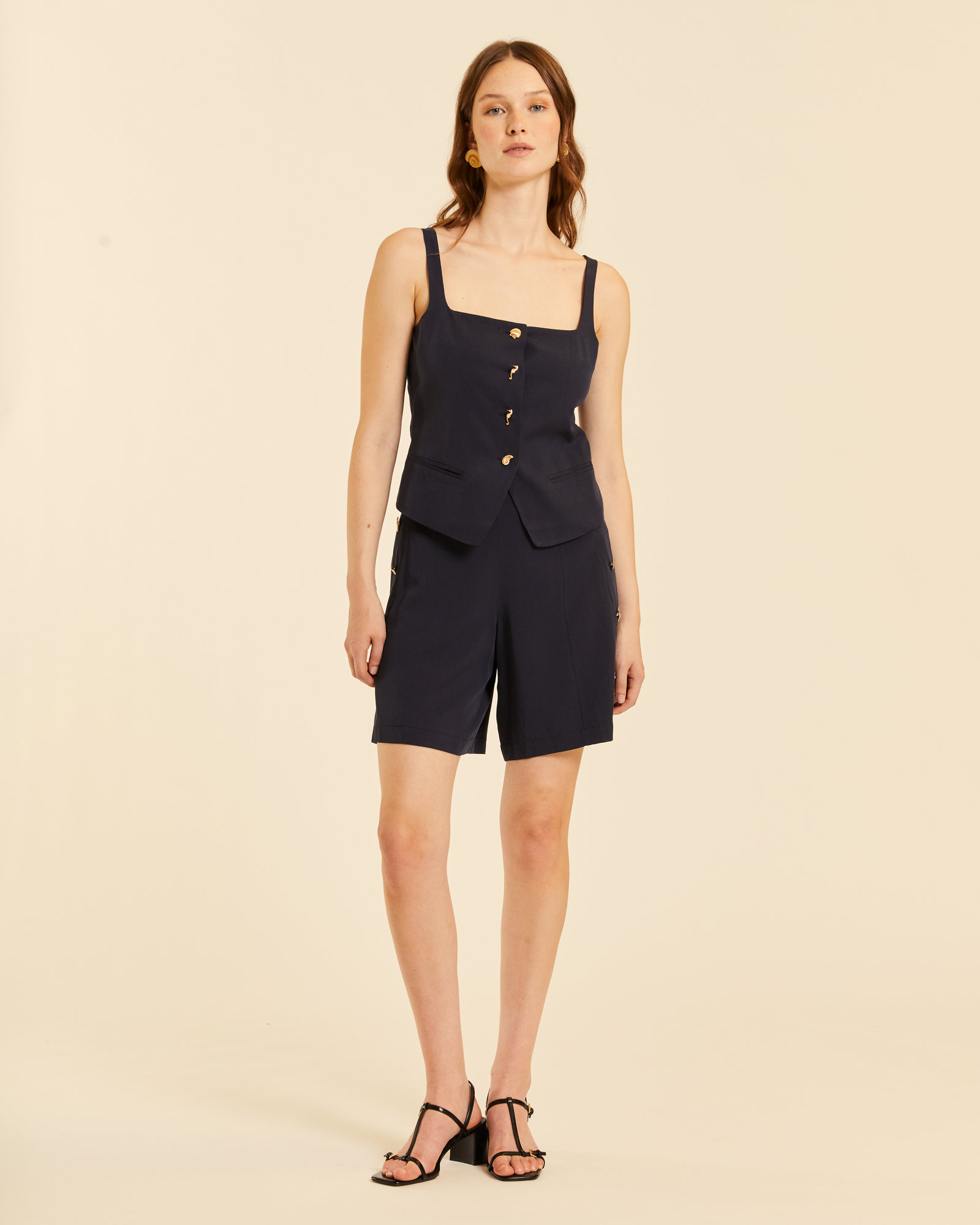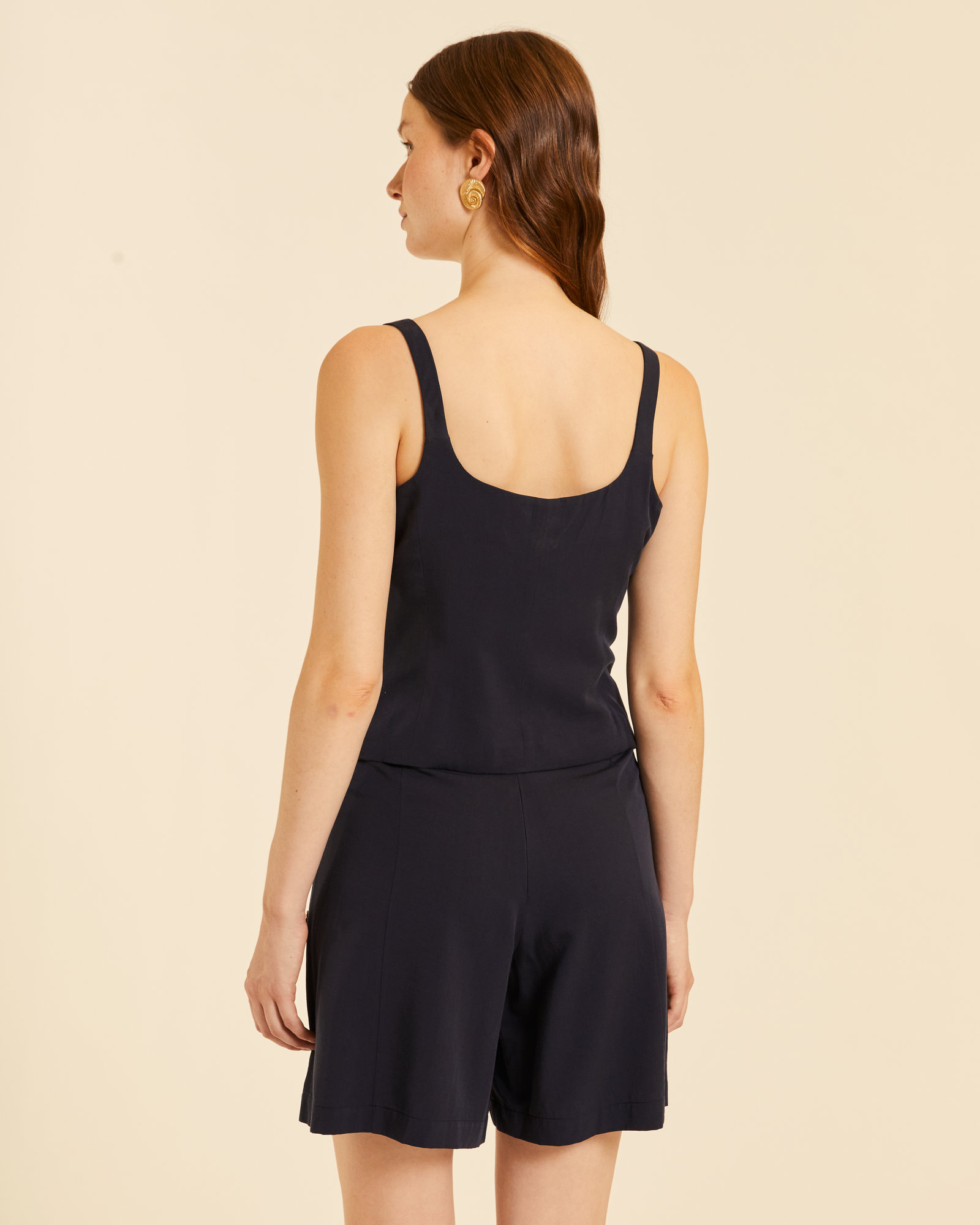 Top chaleco negro 70% RAYON 30% TENCEL. La modelo lleva talla S y mide 177cm