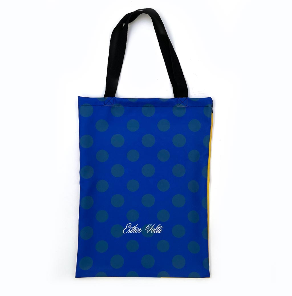 Tote bag ilustrada por Esther Voltà, confeccionada con tela de poliester de 160gr/m2 impresa a todo color. Medidas 34 x 47 cm. Asas de algodón de 50 cm (Para llevarla en la mano o colgada en el hombro). Es recomendable que laves tu Tote Bag a máquina a una temperatura máxima de 40º pero nunca utilices blanqueador (lejía o cloro) en el proceso. En el caso del planchado deberás hacerlo siempre a baja temperatura y por la cara del tejido. Puedes secar tu Tote Bag en secadora sin problemas, siempre a temperatura normal.