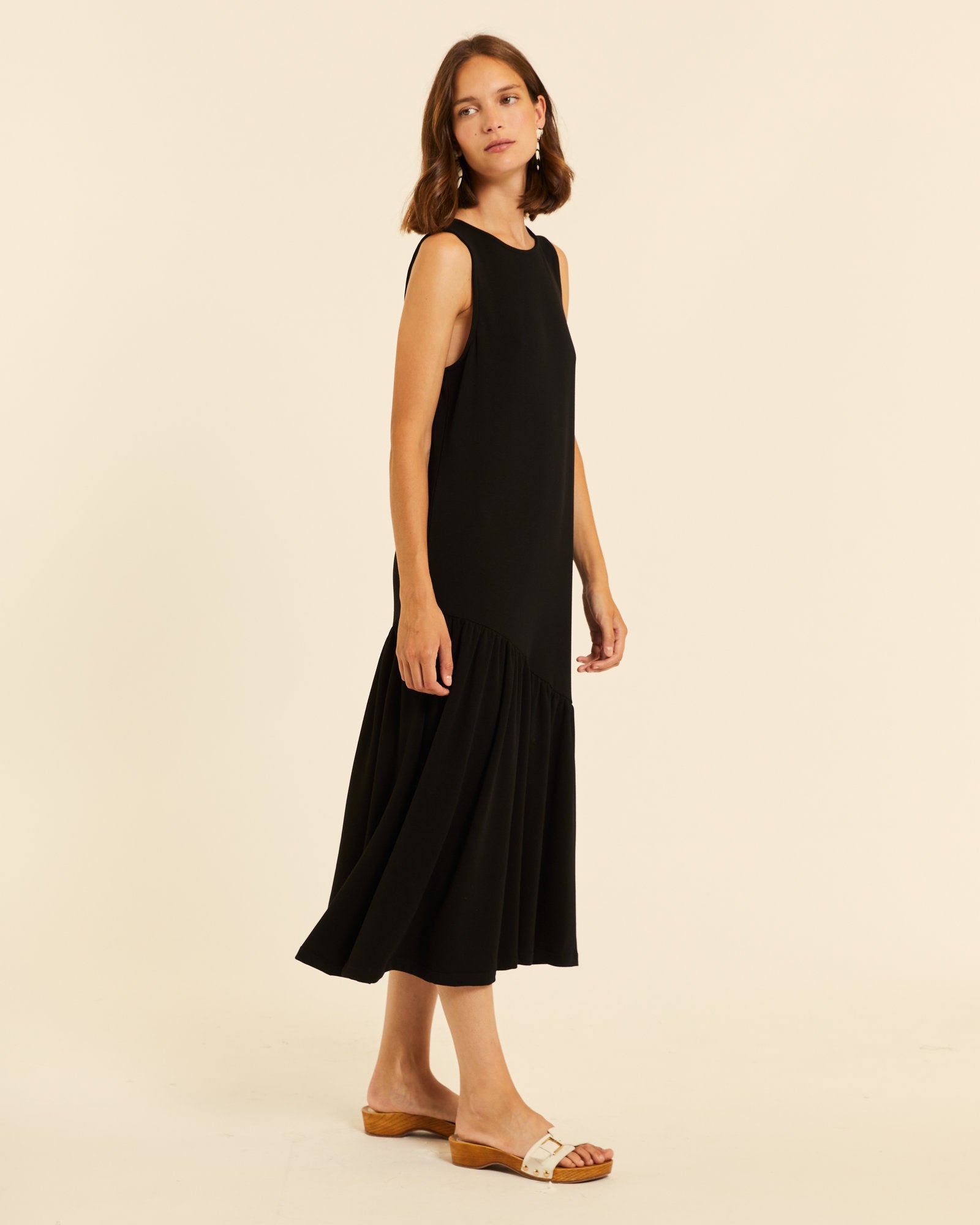 Vestido de mujer negro con estilo elegante y versatil. Ideal para eventos, cenas o invitada, con caida comoda y tallas XS a XL.