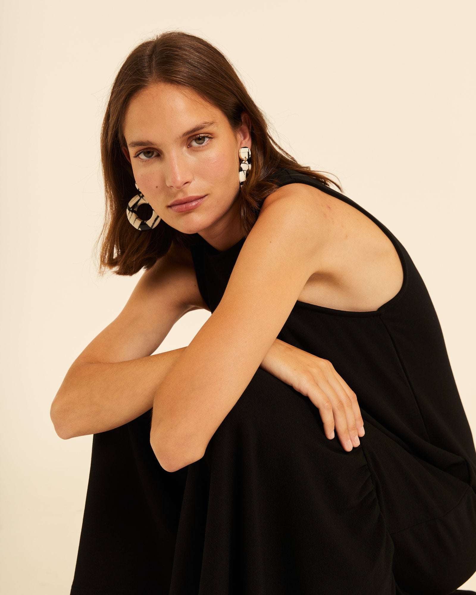 EN: Women’s black dress with an elegant, versatile style. Ideal for events, dinners or guest looks, with a comfortable fit in XS to XL.