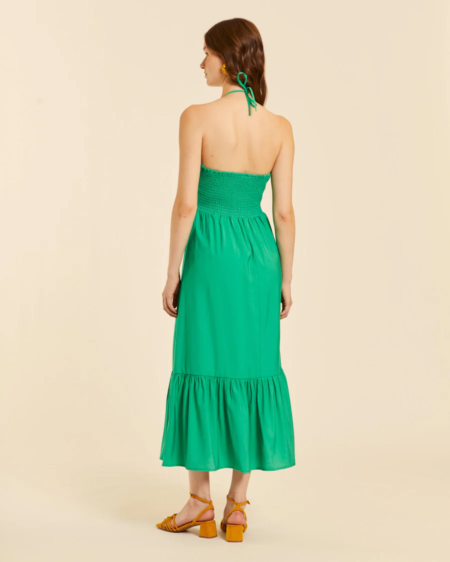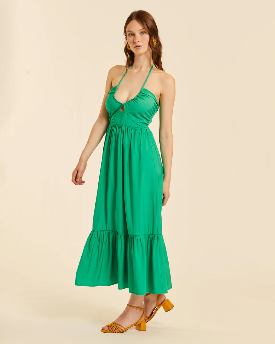 Vestido tirantes con volante verde