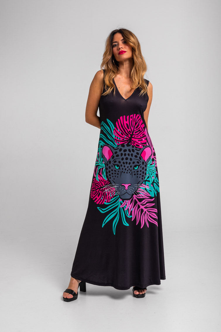 Nocturna: y siembre al acecho intentando cazar al tiempo – Vestido tirantes de hojas y panteras: Vestido largo de corte lencero confeccionado en tejido fluido. Escote pico, sin mangas y tirantes anchos. Espalda con mismo acabado de escote en V como el frontal. Diseño del bajo acabado en corte recto y con abertura en los laterales. – 95% Poliéster y 5% Elastán. – Lavar a máquina en agua fría. No usar blanqueador. No usar secadora. Secar colgado a la sombra. Planchado a temperatura baja, por debajo de 100 ºC. Planchar del revés. No dejar la plancha parada sobre la prenda. Lavar con colores similares. – TALLA XS: Medida de pecho 41 cm, medida de la cintura 48 cm, medida del bajo 121 cm y largo del cuerpo 142 cm.TALLA S: Medida de pecho 43 cm, medida de la cintura 50 cm, medida del bajo 123 cm y largo del cuerpo 142 cm.TALLA M: Medida de pecho 45 cm, medida de la cintura 52 cm, medida del bajo 125 cm y largo del cuerpo 142 cm.TALLA L: Medida de pecho 47 cm, medida de la cintura 54 cm, medida del bajo 127 cm y largo del cuerpo 142 cm.TALLA XL: Medida de pecho 49 cm, medida de la cintura 56 cm, medida del bajo 129 cm y largo del cuerpo 142 cm. – Las medidas de las prendas pueden presentar pequeñas variaciones debido al proceso de producción de hasta 2 cm. – Lolina ha realizado un gran esfuerzo para mostrar los colores de las prendas de la forma más cercana a la realidad posible. No obstante, queremos que tengas en cuenta que el color de las prendas que aparecen en pantalla puede estar sujeto a variaciones dependiendo de la calidad de tu ordenador o smartphone.