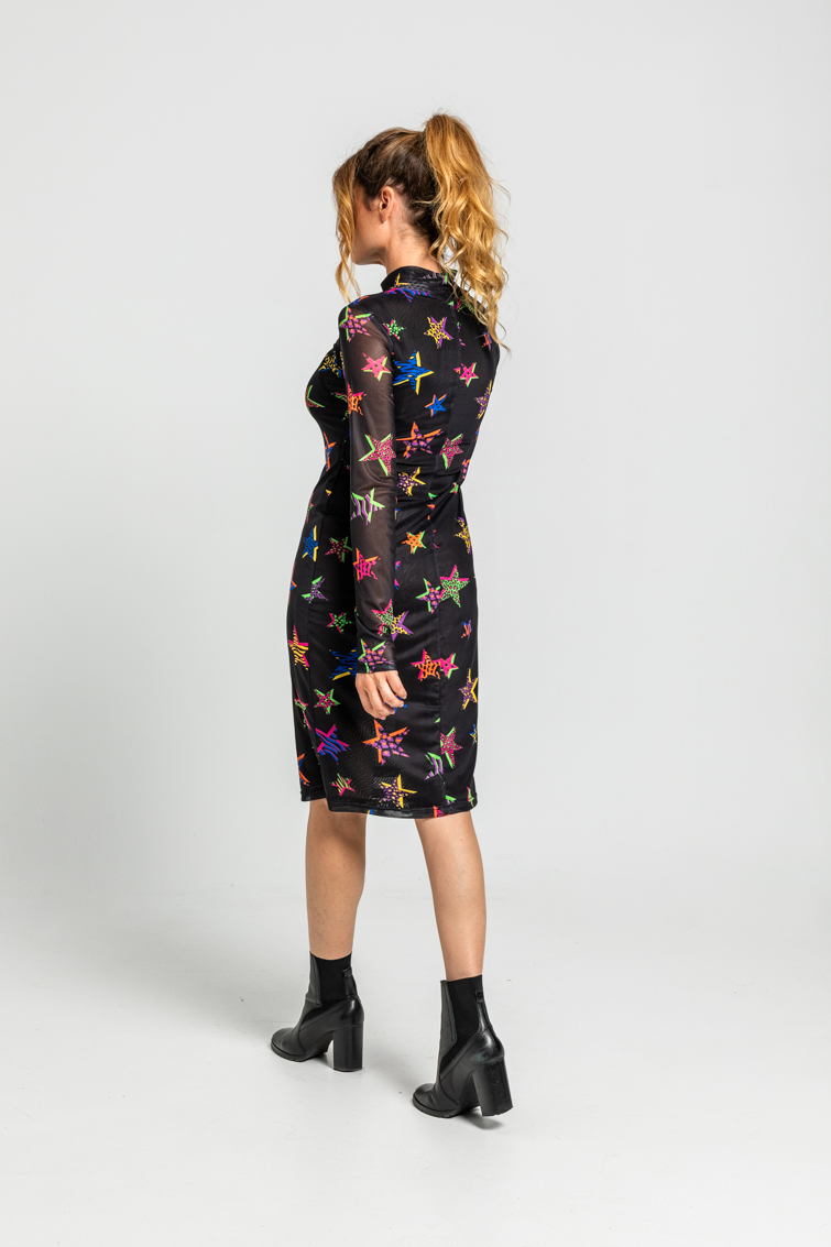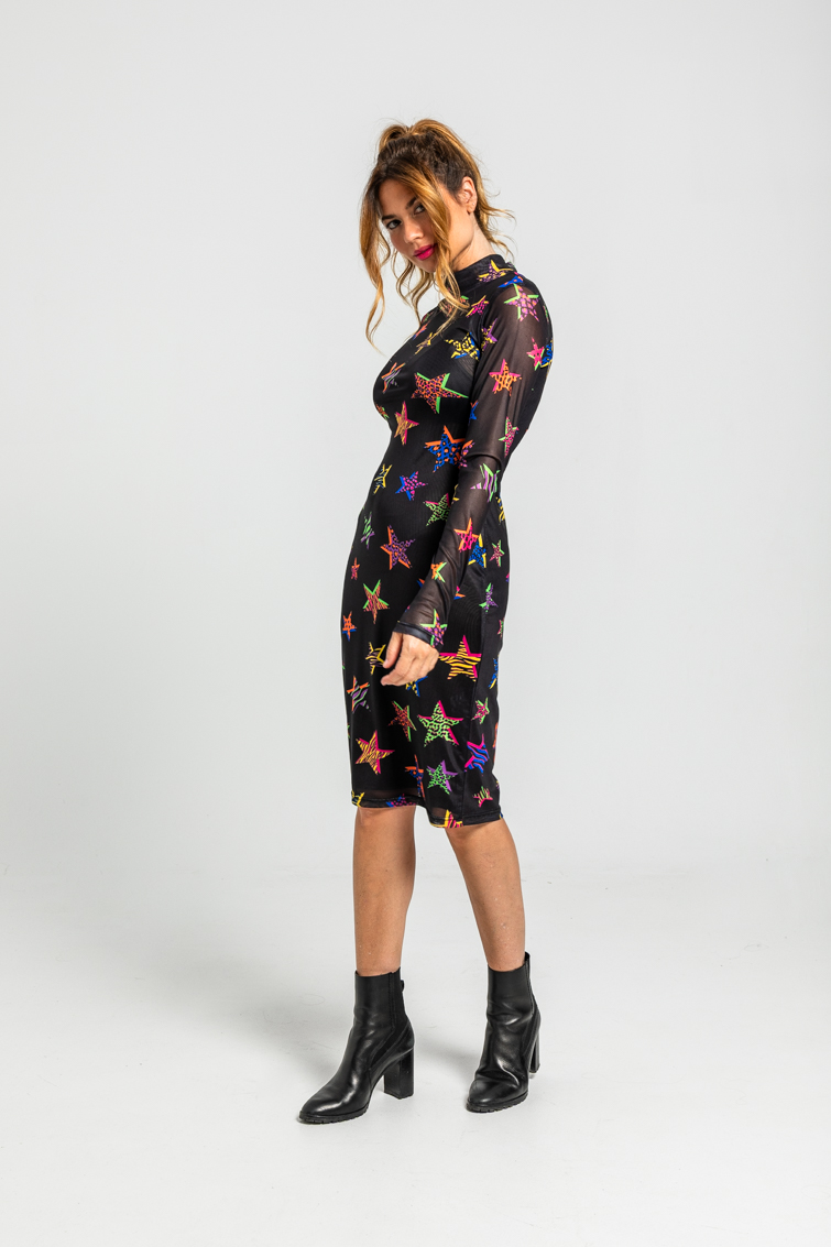 Shiny Girl: y brillando con luz propia. – Vestido tubo de tul cuello chimenea: Vestido midi de tejido elástico. Modelo entallado con cuello alto y mangas largas. – Tul elástico. 95% Poliéster y 5% Elastán. – Lavar a máquina en agua fría. No usar blanqueador. No usar secadora. Secar colgado a la sombra. Planchado a temperatura baja, por debajo de 100 ºC. Planchar del revés. No dejar la plancha parada sobre la prenda. Lavar con colores similares. – TALLA XS: Medida de pecho 38 cm, medida de la cintura 35 cm, medida del bajo 45 cm y largo del cuerpo 121 cm.TALLA S: Medida de pecho 40 cm, medida de la cintura 37 cm, medida del bajo 47 cm y largo del cuerpo 121 cm.TALLA M: Medida de pecho 42 cm, medida de la cintura 39 cm, medida del bajo 49 cm y largo del cuerpo 121 cm.TALLA L: Medida de pecho 44 cm, medida de la cintura 41 cm, medida del bajo 51 cm y largo del cuerpo 121 cm.TALLA XL: Medida de pecho 46 cm, medida de la cintura 43 cm, medida del bajo 53 cm y largo del cuerpo 121 cm.TALLA XXL: Medida de pecho 48 cm, medida de la cintura 45 cm, medida del bajo 55 cm y largo del cuerpo 121 cm. Las medidas de las prendas pueden presentar pequeñas variaciones debido al proceso de producción de hasta 2 cm. – Lolina ha realizado un gran esfuerzo para mostrar los colores de las prendas de la forma más cercana a la realidad posible. No obstante, queremos que tengas en cuenta que el color de las prendas que aparecen en pantalla puede estar sujeto a variaciones dependiendo de la calidad de tu ordenador o smartphone.